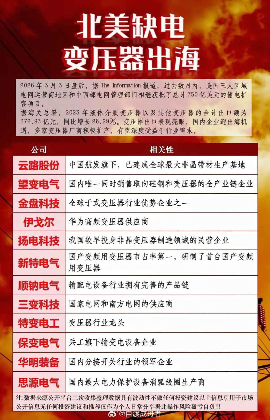 横跨材料、变压器整机、输配电三大环节,这12家公司正在浪潮中“闷声发大财”: