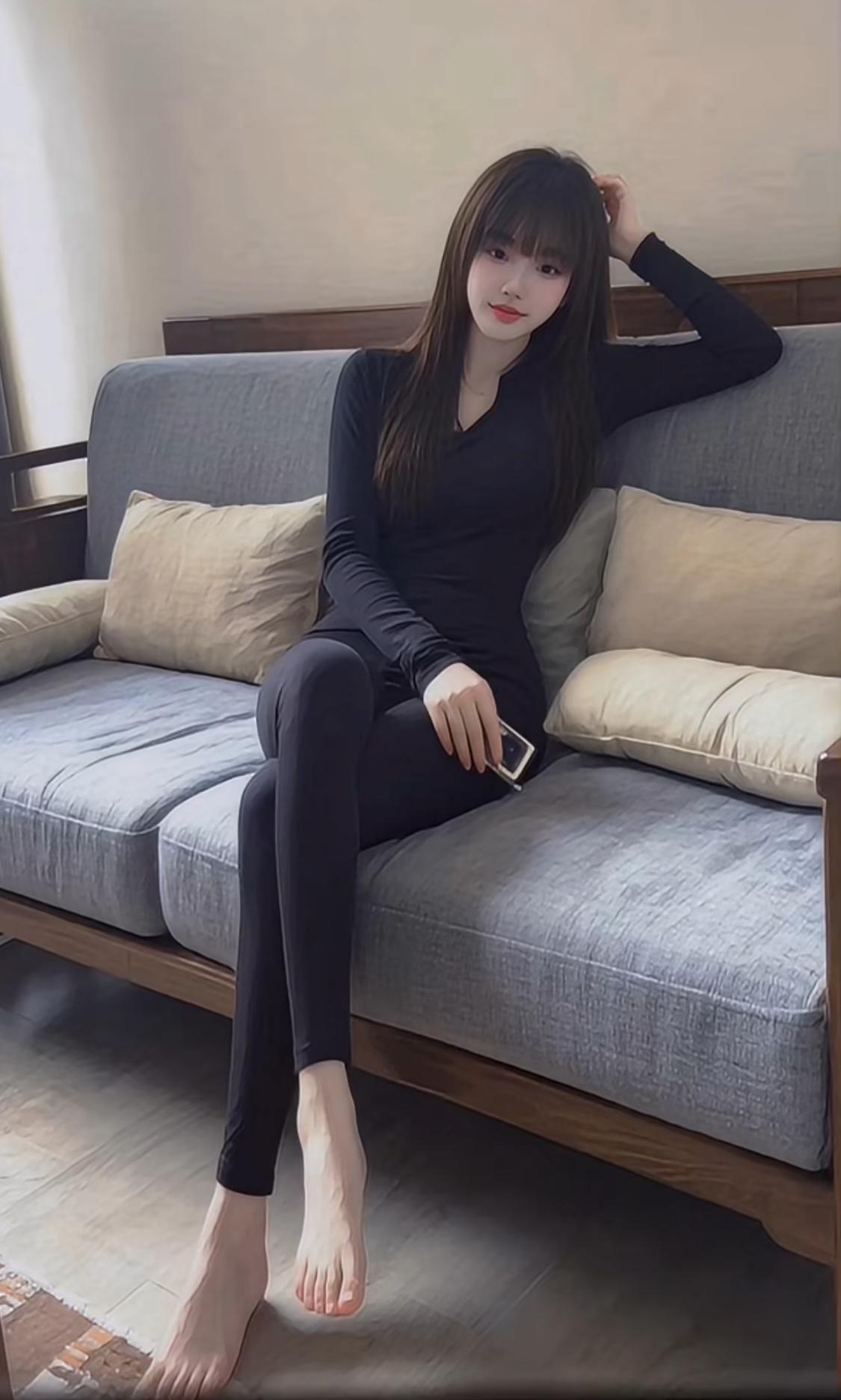 宅家慵懒时光,黑衣黑裤,舒适自在