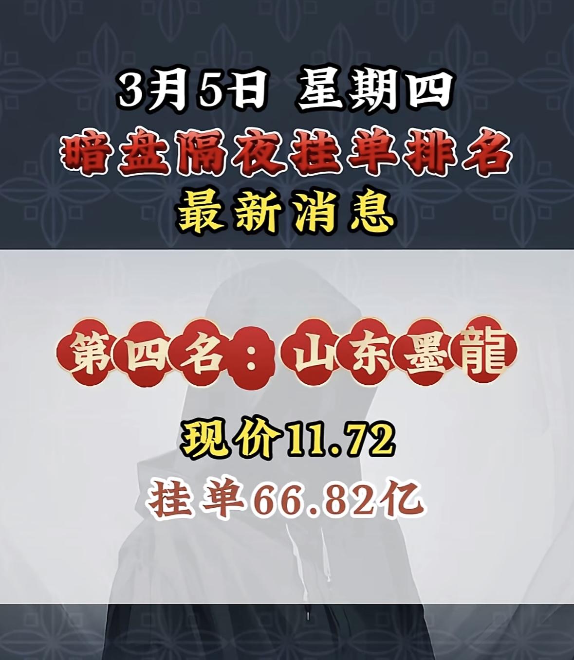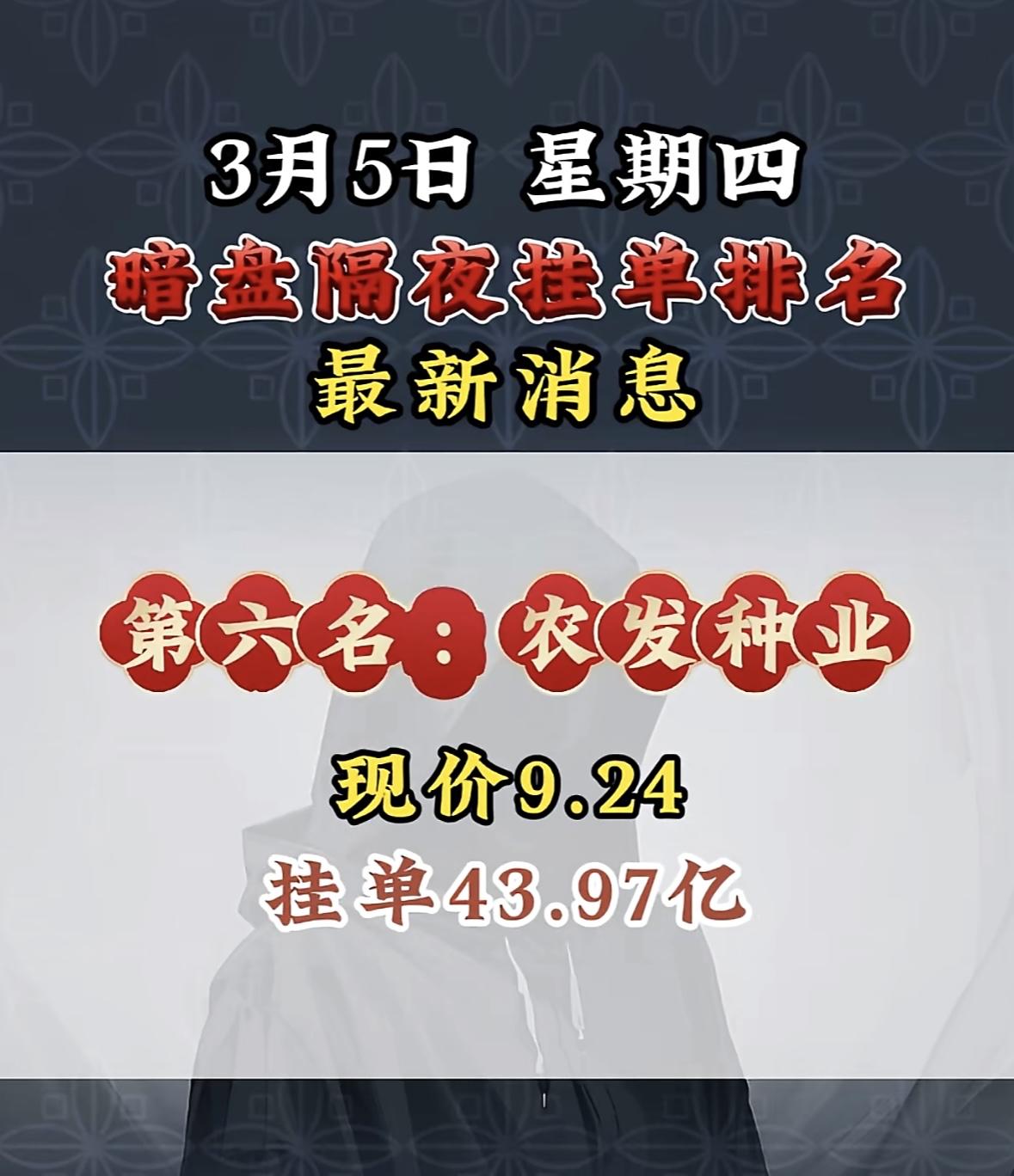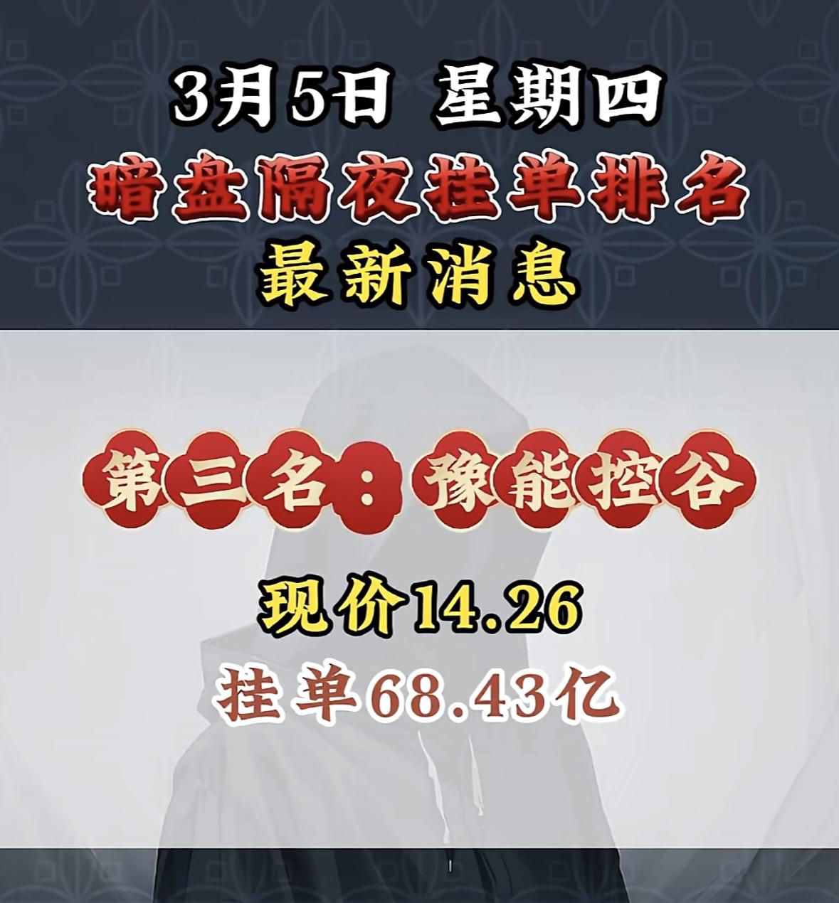 3月5日暗盘隔夜挂单前8名揭晓,这可太让人关注了。华胜天成尤其惹眼,现价29.06,挂单金额竟高达73.61亿,直接排到了暗盘隔夜挂单的第二名。这么高的挂单金额,说明不少人看好它啊。也许背后有啥利好消息,引得投资者纷纷出手。说不定之后股价会有大波动,要是涨起来,那些提前挂单的可就赚翻了。不过股市这东西,谁也说不准,也有可能出现意外。但这挂单情况确实给市场添了不少悬念,大家都在盯着华胜天成后续的表现呢。