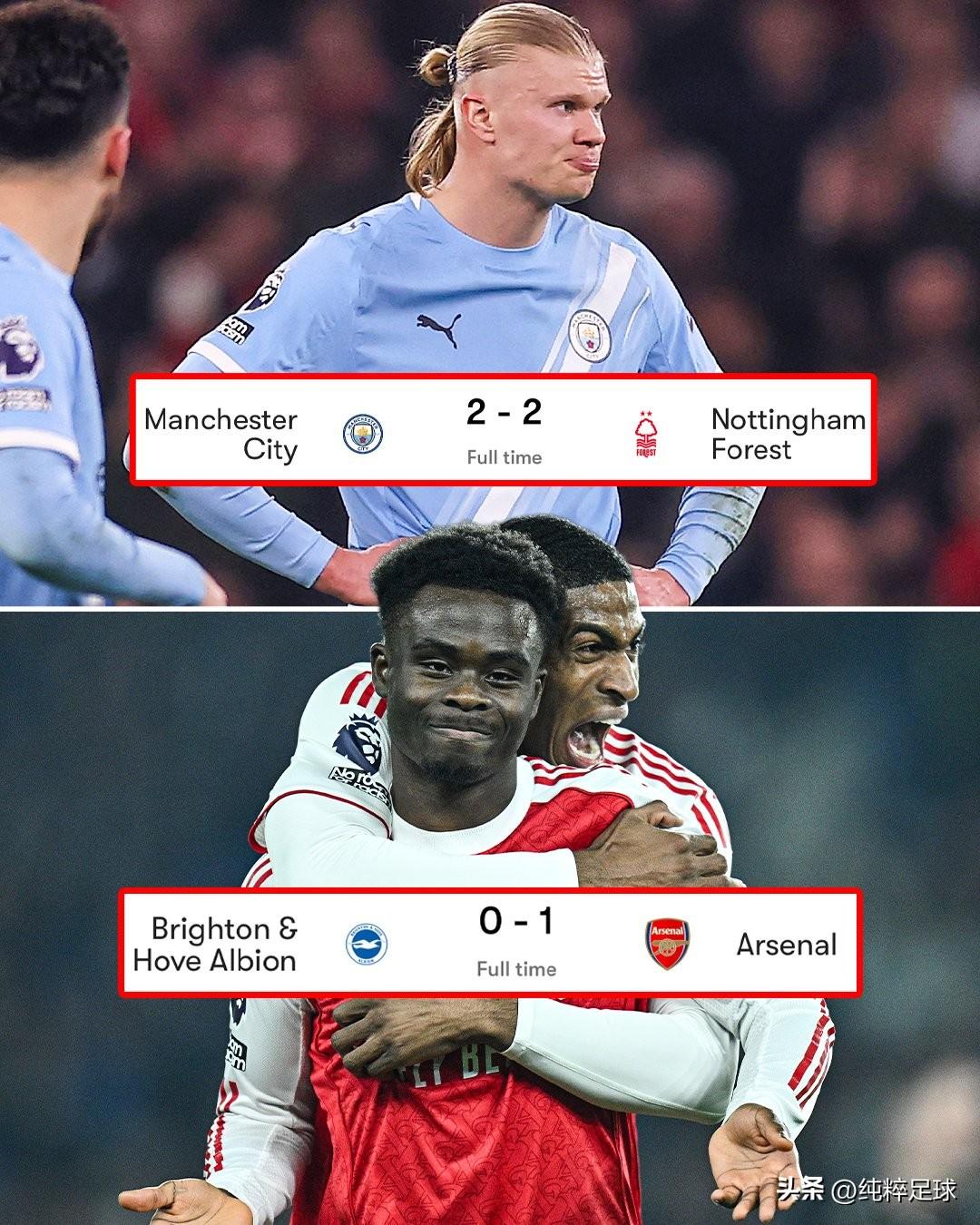 两场同时开球的关系争冠的比赛战罢,几家欢喜几家愁。 阿森纳1-0小胜布莱顿,另