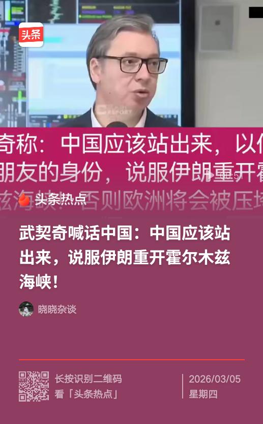 以前觉得这个小国家总统挺好的,现在感觉也就那样。 武契奇他胆心因美以伊打战,导致石油价暴涨,通胀飙升、欧洲经济直接受冲击,就公开喊话让中国以伊朗朋友的身份出面,说服伊朗开放霍尔木兹海峡,让石油可以运出来。 只能说,他真可敢提,他怎么不让欧州出面让美以不要打伊朗。看看那些受难的儿童,让欧洲出面劝和停止战争。