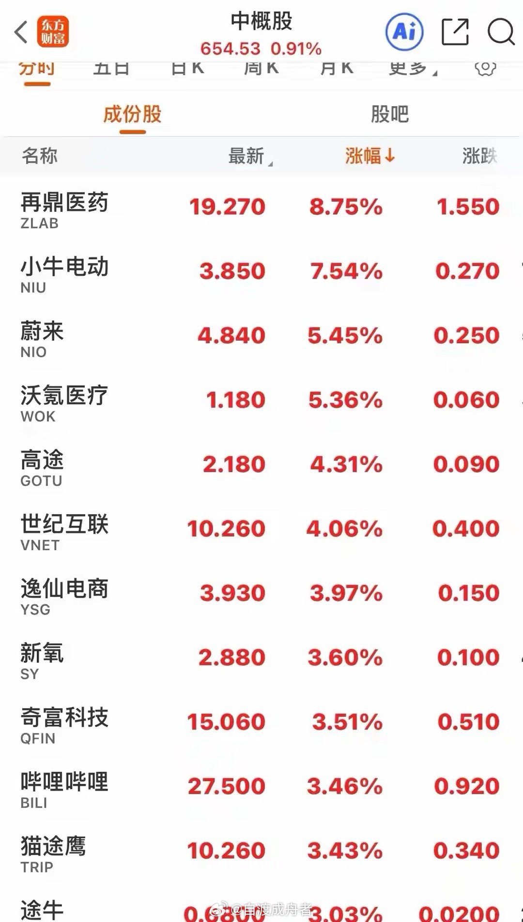 中概股也迎来普涨行情,再鼎医药、蔚来、哔哩哔哩等多只个股涨幅超2%,拼多多、百度等头部企业亦小幅上扬,整体呈现出企稳回升的态势。