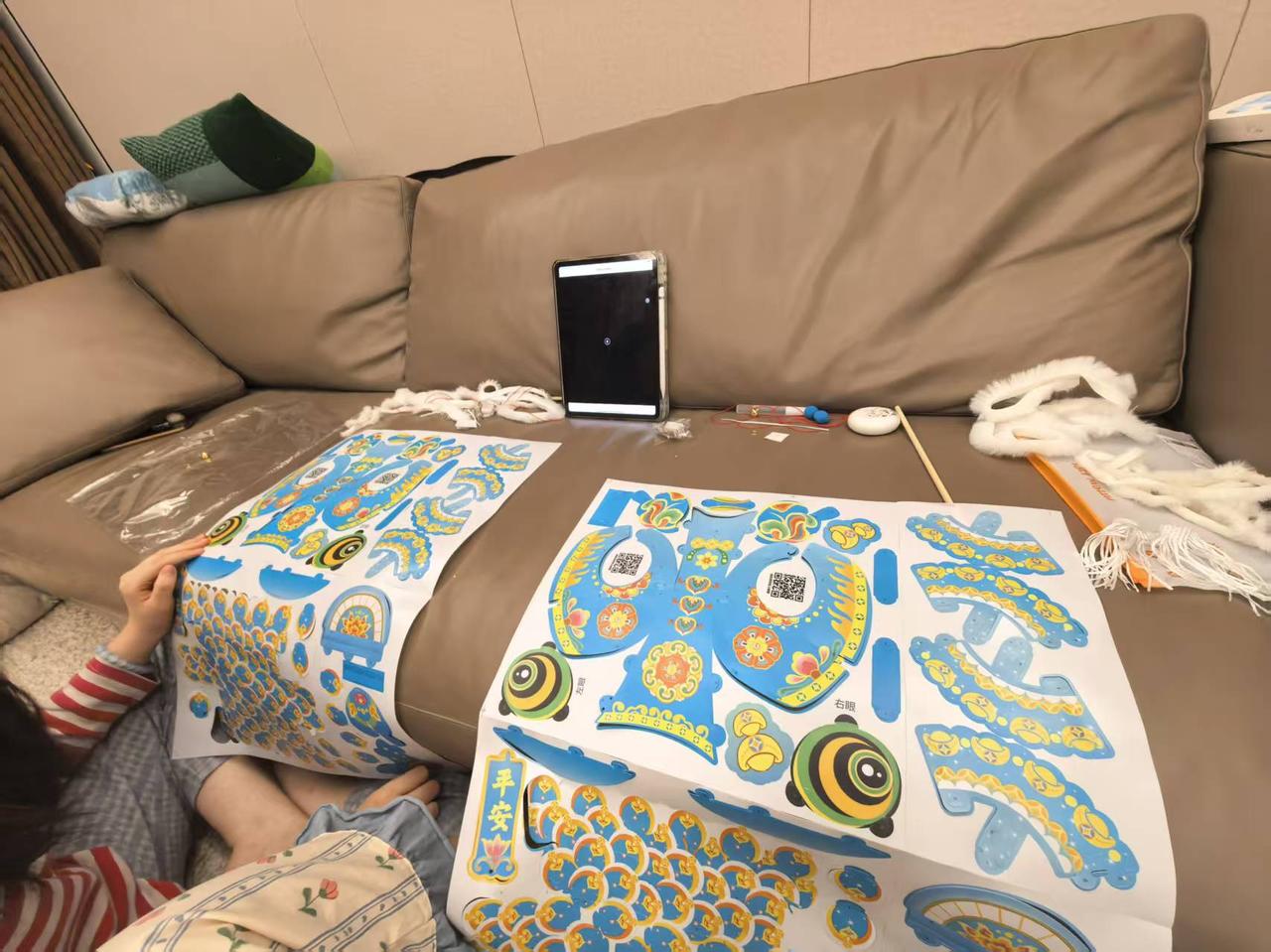 这是小宝贝们用彩纸做的花灯,是不是很漂亮? 小宝贝们对过年的兴趣非常有期待,她们用自己买的彩纸剪接后,对接的元宵花灯真是“天依无缝”,美极了。 这做花灯的手艺怎么样?请友友们评论一下吧!