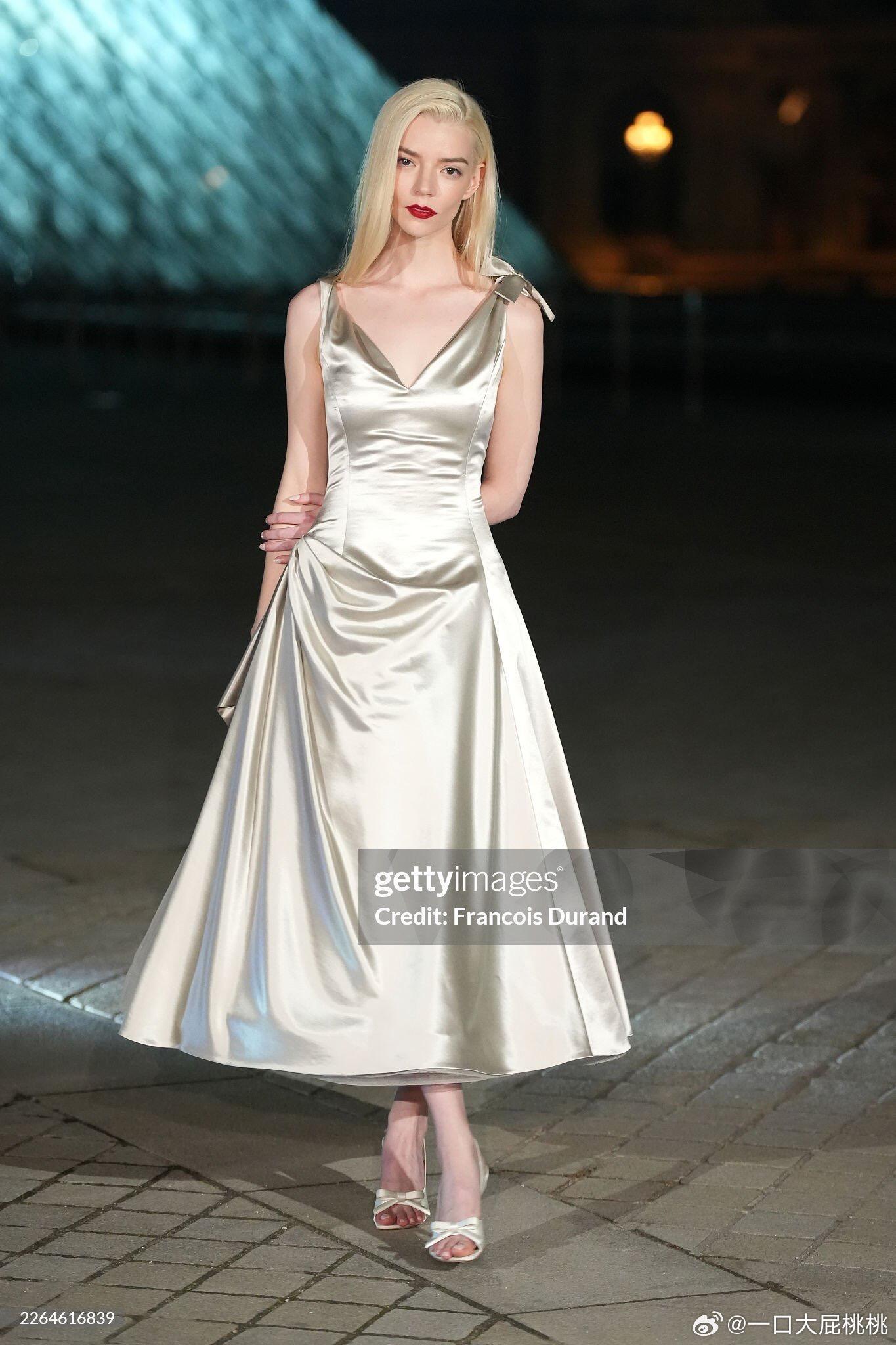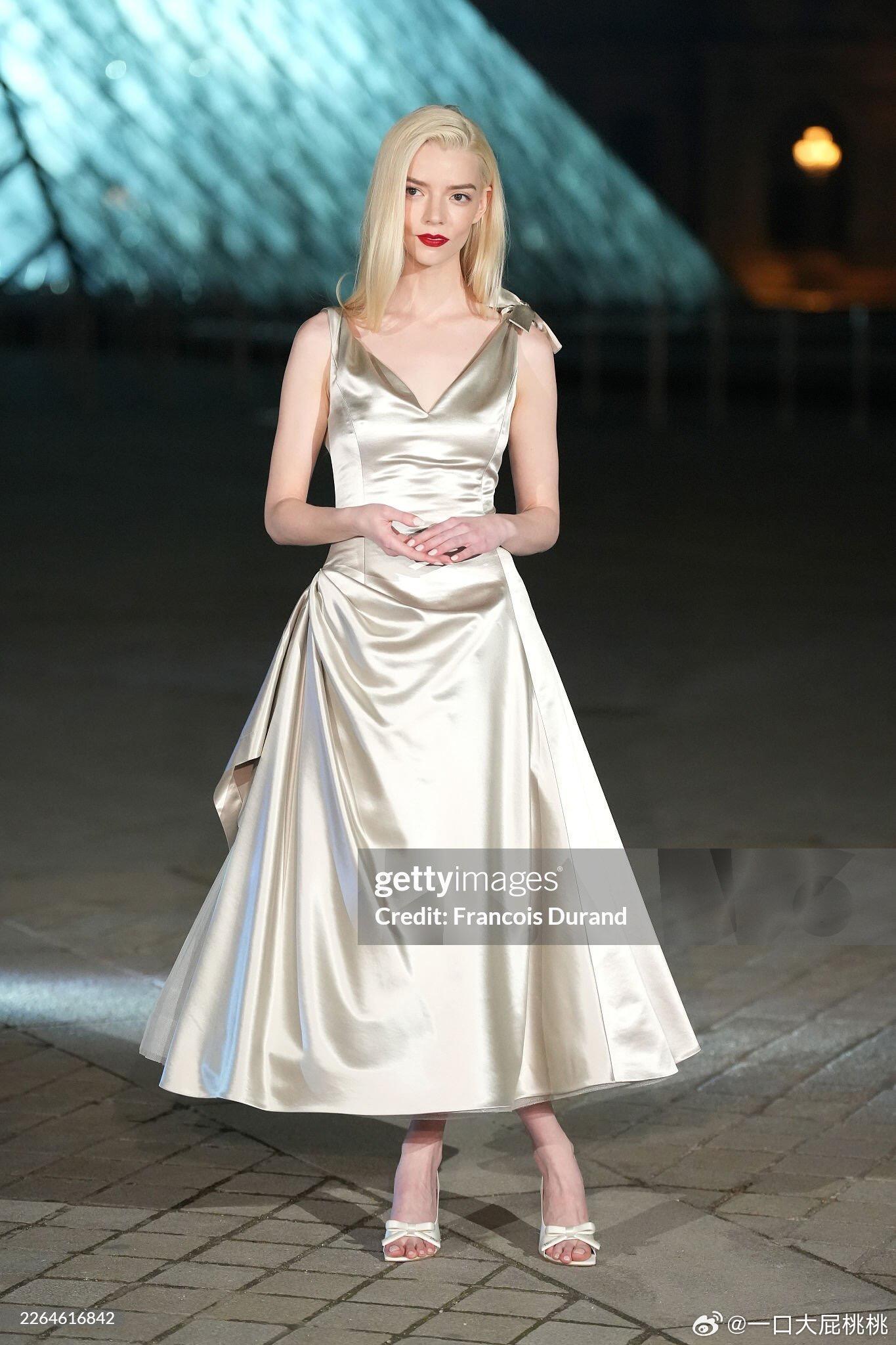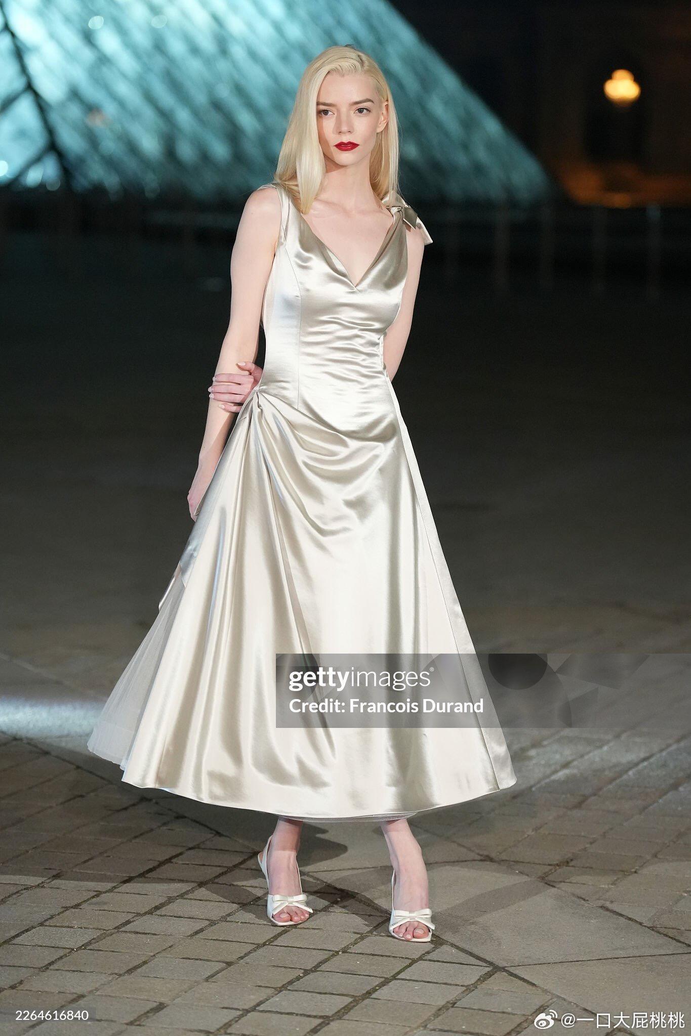 安雅Dior秀后又转场卢浮宫慈善晚宴,上身Dior珍珠白吊带裙,美的像夜晚璀璨发光的珍珠!直击时尚幕后