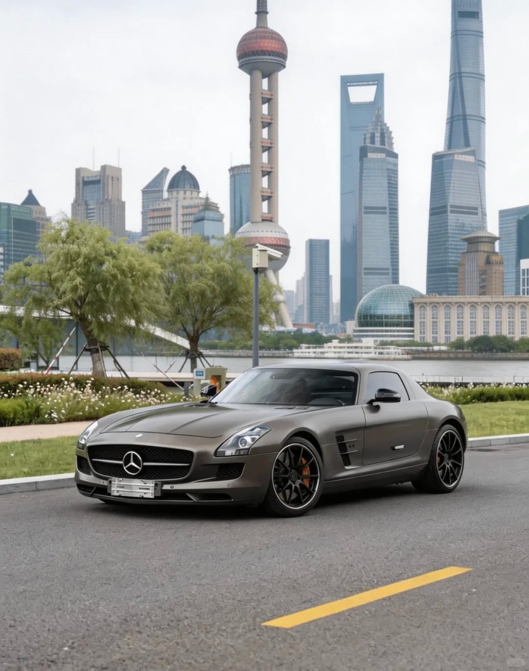 早上好,奔驰SLS AMG跟东方明珠还挺搭绝美车片