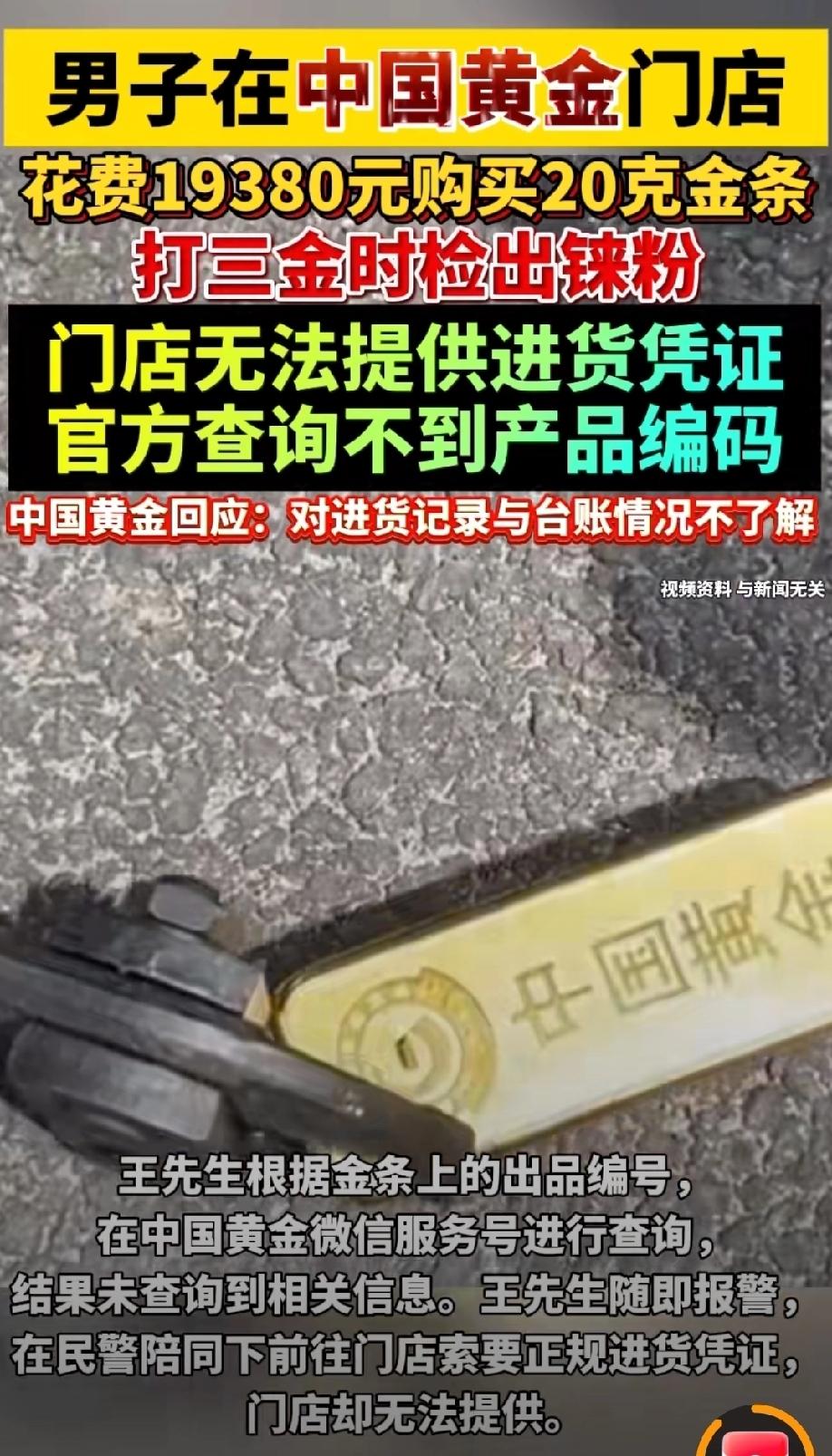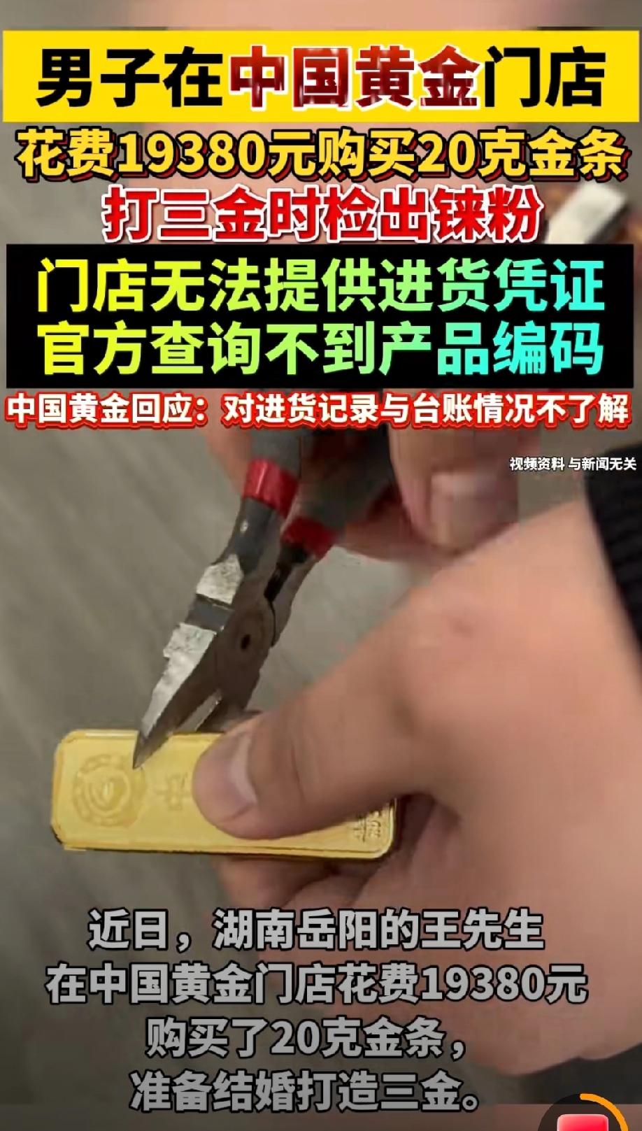 吃相太难看了!湖南岳阳,男子在19380元在金店购买了20克金条,等结婚打造金首饰时,发现金条里面有杂质,经过检测,里面竟然有不少铼粉。铼粉掺到黄金里面,肉眼完全看不出来,只有熔制环节才能发现,这坑人的手法简直太高明。事后,男子根据金条的出品编号查询,发现根本查不到相关的金条信息,他只能找金店讨要说法,没想到金店的解释令人更加气愤。 王先生最近正忙着准备结婚的事,看着不断上涨的金价,购买“三金”首饰让他头皮发麻,但婚礼没有金首饰又不行。 为了省点钱,王先生打算买根金条,之后熔了打造成结婚的三金。 来到某品牌金店后,王先生特意挑了一根20克的金条,算下来一共花了19380元。 看着金条色泽均匀、分量足,又是大品牌,王先生心里特别踏实,觉得这钱花得值,就放心地把金条收了起来,只等找个时间去打金店加工。 过了几天,王先生带着金条来到打金店,师傅先肉眼看了看金条,又剪开检查内部,里外都没看出任何问题,王先生更安心了。 可没想到,等到高温熔制的环节,金条一熔化就不对劲了,里面冒出不少杂质,根本没法正常加工成首饰。 师傅当场就说,这金条肯定有问题,大概率是掺了别的东西。 王先生一听,心一下子沉到了谷底,花近两万元买的结婚用金条,居然可能是假的? 为了验证这一情况,王先生赶紧找地方做专业检测。 检测结果出来后,王先生彻底懵了,金条里竟然检出了铼粉。 这种东西和黄金密度接近,肉眼完全看不出来,剪开也查不到,只有熔制时才会露馅,这种造假手法隐蔽得让人防不胜防。 自己满心欢喜备婚,却遇上这种坑人的事,王先生气愤的不行,他决定要查清楚这根金条的来路。 王先生想起金条上有出品编号,赶紧打开中国黄金微信服务号,输入编号查询真伪,可反复试了好几次,系统都显示查不到任何相关信息。 正规品牌的金条,编号都能在官方系统查到,自己这根却查无记录,王先生心里的疑团越来越大,意识到这事不简单,当即选择报警。 民警赶到后,陪着王先生一起回到当初买金条的门店,要求店家拿出正规的进货凭证、质检报告和台账,证明金条的合法来源。 可谁知,面对民警和王先生的质问,门店工作人员支支吾吾,翻来翻去,始终拿不出任何有效的进货凭证,连最基本的进货记录都没有。 花正品的钱,买到来源不明、还掺了假的金条,王先生实在不敢相信,大品牌门店居然连进货凭证都提供不了,这让他根本没法接受。 无奈之下,王先生拨打了金店的官方客服电话,想让品牌方给个说法。 客服回应说,品牌的黄金都是统一采购、统一供货的,但具体的进货记录和台账,客服表示他们不了解具体情况,只说涉事的是加盟店,金条编码可能暂未录入系统。 这样的解释轻飘飘的,既没说清问题根源,也没给出解决方案,王先生听了之后,心里更窝火了。 好好的备婚喜事,因为一根掺假的金条闹得人心烦。 满怀期待买金条,到熔制时发现问题,不仅查询编号无记录、门店更是拿不出进货凭证,这让王先生心寒至极。 目前,当地市场监管部门已经介入调查,这件事也让不少消费者捏了一把汗,大家都在等着一个明确的结果,希望能给王先生一个公道,也让大家买黄金时能更放心。 《消费者权益保护法》第五十五条规定:经营者提供商品或者服务有欺诈行为的,应当按照消费者的要求增加赔偿其受到的损失,增加赔偿的金额为消费者购买商品的价款或者接受服务的费用的三倍。 金店将掺铼粉、无正规编码、无进货凭证的金条当作正品足金出售,属于以假充真、隐瞒真相,已构成消费欺诈。 一旦有证据查实,王先生可以要求门店退还19380元货款,并额外主张三倍价款即58140元的惩罚性赔偿。 只要门店无法提供进货来源、官方查无编码,进一步坐实欺诈故意,该赔偿主张合法有据,市场监管部门也可据此对商家作出行政处罚。