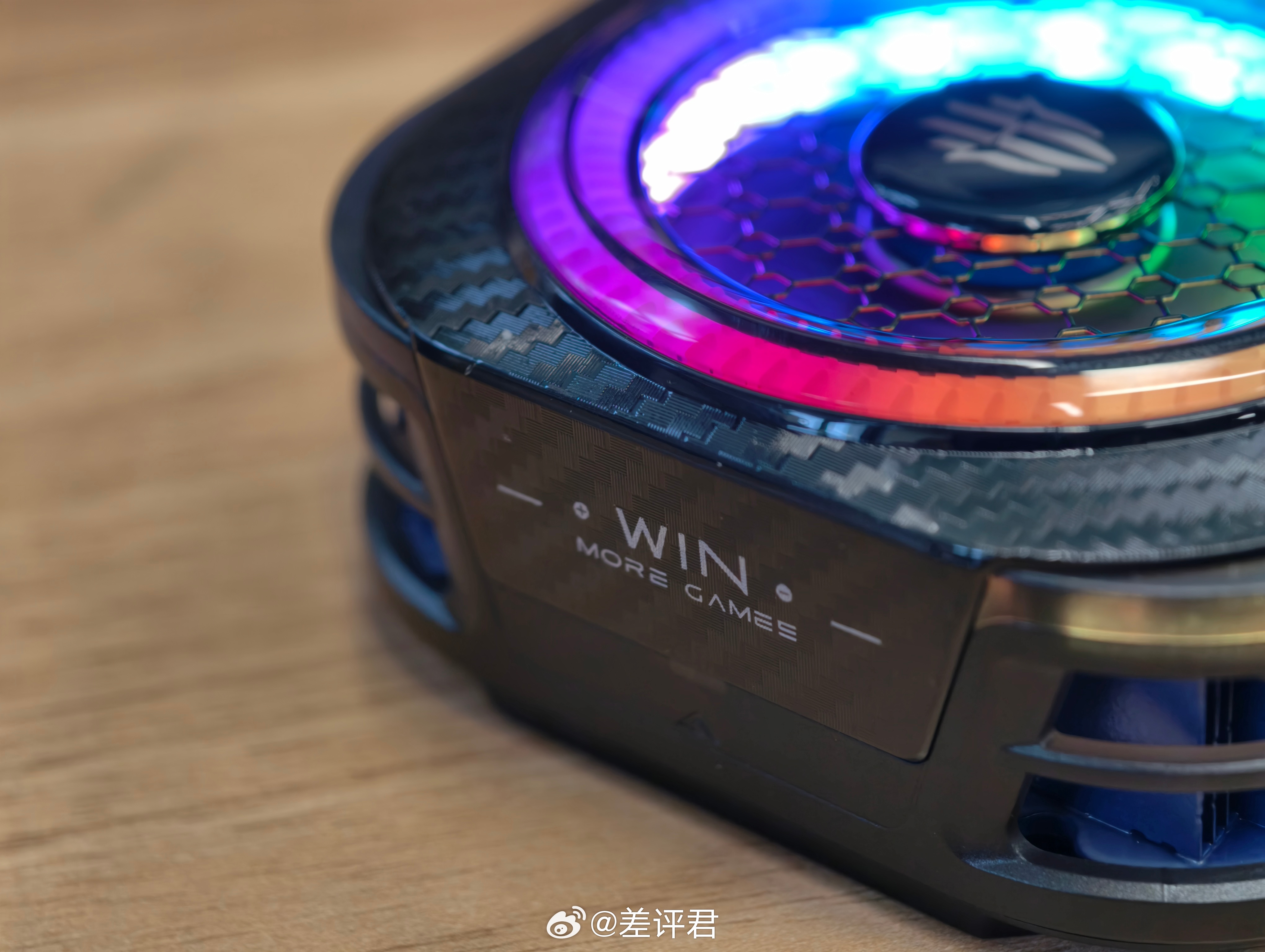 讲道理红魔从手机到全家桶设计都挺好看的,符合“电竞宇宙”的说法,这次的碳纹我感觉比之前的金属更好看,摸着也舒服。刚通电之后听到有风扇声我还寻思这噪音不小啊,关了之后才发现是对面后期同事的电脑在跑渲染,实际上红魔这风扇噪音就 36db 左右