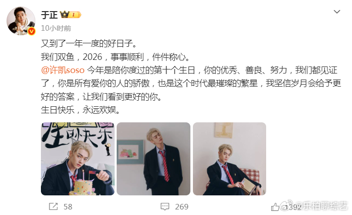 于正给许凯庆生 于正给许凯庆生真的是带来了一波回忆杀呀,并且陪许凯也是度过了10个生日了,整整10年的时光呀!于正陪许凯度过10个生日了