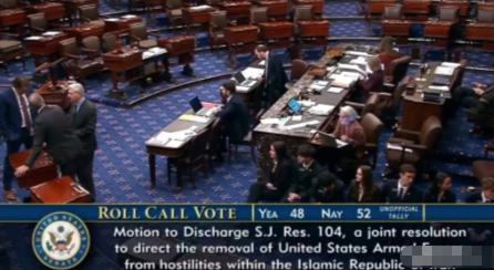 美国国会阻止空袭伊朗失败! 美国参议院以52票赞成、48票反对否决了一项战争权力决议。该决议将迫使美国总统特朗普在未经国会批准的情况下停止在伊朗的进一步军事行动。 这场投票并非临时发起,而是美国国内围绕战争决策权持续博弈的集中体现,背后牵扯着宪法条款、党派立场与中东战局走向等多重因素。 按照美国宪法规定,宣战权原本归属于国会,总统仅能在特定紧急情况下动用有限军事力量,1973 年通过的战争权力相关法案进一步明确,总统用兵后需在规定时间内向国会报备并获得授权,否则必须停止相关军事行动。 近期美军对伊朗展开多轮空袭行动,相关决策并未经过国会完整授权流程,这也成为部分议员推动本次投票的直接原因。 提出该项决议的议员希望通过立法,强制要求美军停止针对伊朗的敌对行动,后续任何打击计划都必须先经过国会投票批准,从制度层面约束单方面升级冲突的可能。 投票过程呈现出清晰的党派分化格局,多数共和党议员站在支持总统军事行动的立场,认为当前伊朗方向的安全威胁具备紧迫性,总统需要灵活的用兵权限保障国家安全。 民主党议员则大多支持该项决议,强调国会应当履行宪法赋予的监督职责,避免美国在未充分讨论的情况下被拖入长期战争。 投票现场还出现跨党派投票现象,个别共和党议员出于制衡权力的理念投下赞成票,也有民主党议员最终选择反对决议,打破了单纯的党派站队逻辑。 这样的投票结果,直接扫清了白宫在对伊军事行动上的立法障碍,此前美国防部门已公开表示,针对伊朗的军事行动可能持续较长时间,行动的节奏与规模将由美方自主掌控。 国会约束失效后,美军在中东地区的军事部署与打击行动将更具灵活性,空袭范围、打击目标都存在进一步调整的可能,中东地区的紧张局势短期内难以缓和。 众议院随后也将针对类似决议进行投票,结合当前国会席位分布与党派立场来看,相关议案通过的可能性同样较低。 即便未来相关决议在国会获得通过,总统仍可行使否决权,而国会想要推翻否决需要达到三分之二以上的赞成票,以本次投票结果来看,这一目标几乎无法实现。 这场投票不仅决定了对伊军事行动的走向,更折射出美国政治体系中行政与立法分支的权力博弈,在国际局势敏感的背景下,国内政治分歧直接影响着地区安全格局。 中东地区的军事冲突持续升级,不仅会影响当地民众的生产生活,也会冲击全球能源供应与地缘安全稳定,美国国会约束机制失效,无疑给本就复杂的地区局势增添了更多不确定性。 那么,对于这件事,大家有什么看法?欢迎大家在评论区进行讨论。