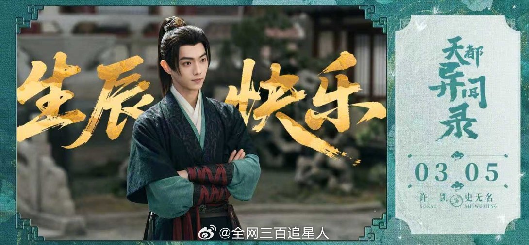 许凯待播宇宙的角色来祝许凯生日快乐了,希望这个so新的一年可以天天开心身体健康,然后带来更多角色和作品🎂