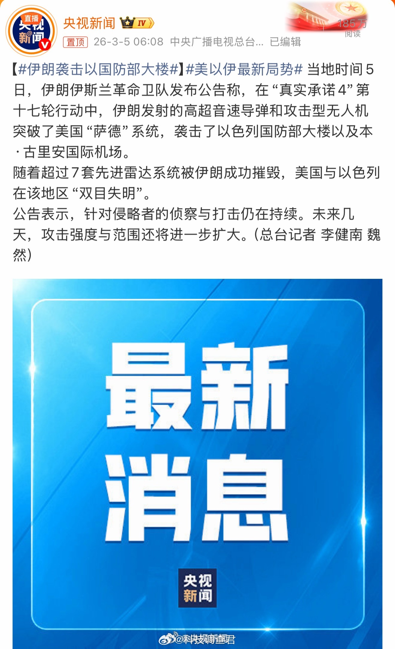 伊朗袭击以国防部大楼这才是新消息,话说看到这句话真开心:超过7套先进雷达系统被伊