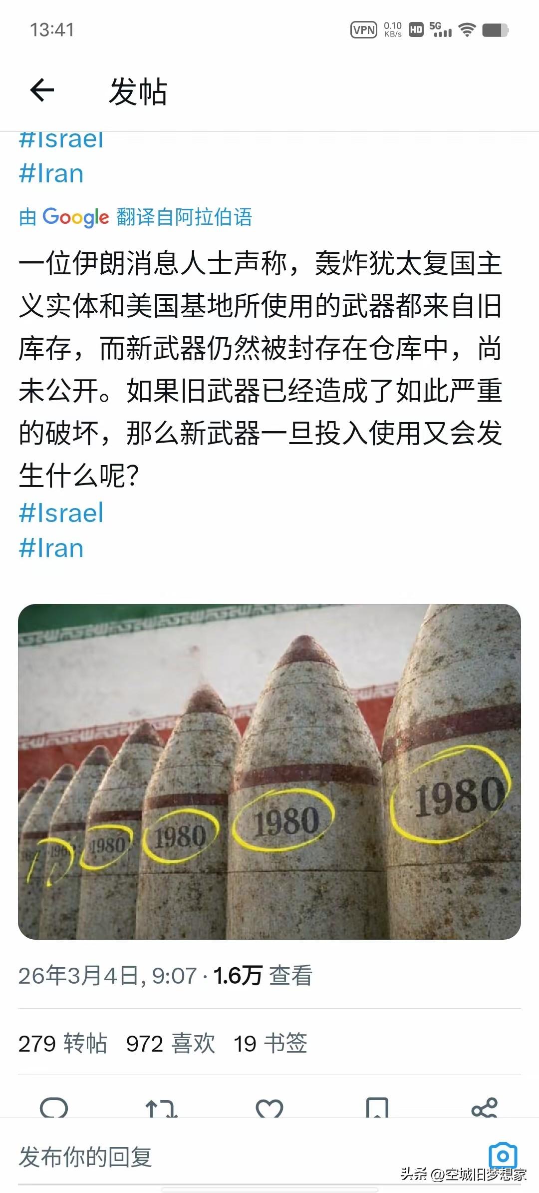 美伊这是在上演“比惨大会”?爱国者2000 vs 伊朗1980,到底谁在演? 美军“爱国者”导弹残骸被发现,生产日期赫然写着:2000年6月,洛克希德·马丁出品,标准的二十多年“老古董”。 伊朗这边更夸张:直接放话,炸以色列和美军基地用的全是1980年的库存老炸弹,新货压根没动。 这操作,看得人一头问号—— 是真穷到只能“去库存”,拿老装备硬扛? 还是产能跟不上,不得不掏家底顶上? 又或者,两边都在舆论场上互相飙演技,看谁先吓退谁? 伊朗导弹储备 美以摧毁伊朗军队的可能性有多大 美国对伊朗动武会带来哪些后果 哈梅内伊去世对伊朗来说意味着什么 这戏码,越来越有意思了。