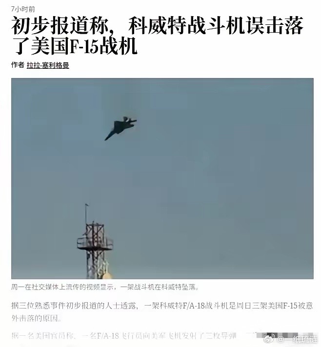 若属实,这名科威特飞行员要名垂青史了。世界上击落F15战机最多的飞行员!但误击之说,值得商榷,同为美国战机,敌我识别系统会自动识别;退一万步说,一次误击三架,这比击落F22的概率还低。