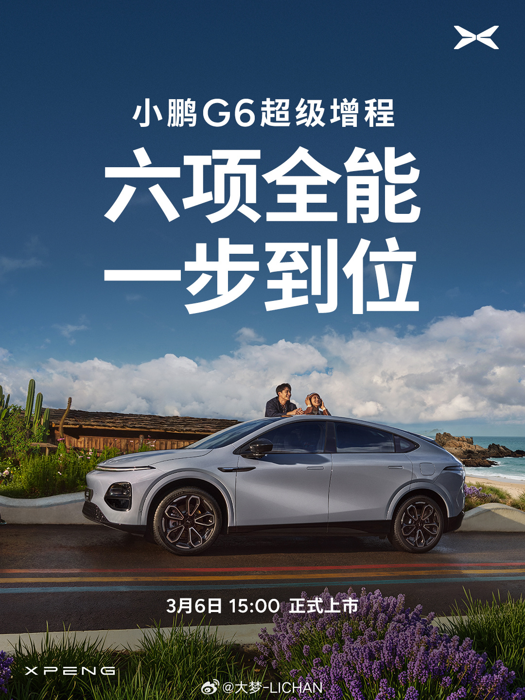 小鹏G6超级增程上市定档3月6日小鹏G6超级增程六项全能一步到位