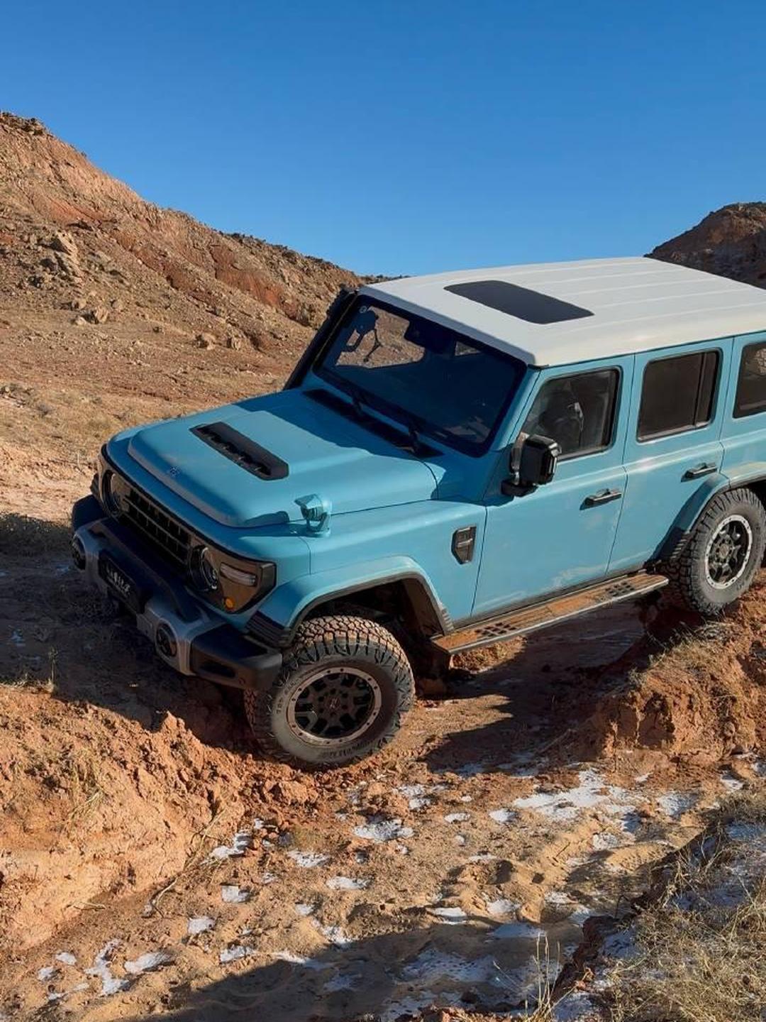 其实越野从不是拼速度,玩的是稳和预判,路线看不准就下车先走一遍,比硬闯省太多麻烦。 玩越野别一上来猛冲烂路,先把胎压降到 1.0–1.2bar,过沙地、泥地抓地力直接翻倍,还不容易陷车。陷车别猛轰油门,越刨越深,先挂低速四驱,轻给油配合方向微调。过交叉轴时慢打方向、匀速走,别中途停车。车上必带拖车绳、气泵和工兵铲,比花哨改装实用。【来自懂车帝车友圈】