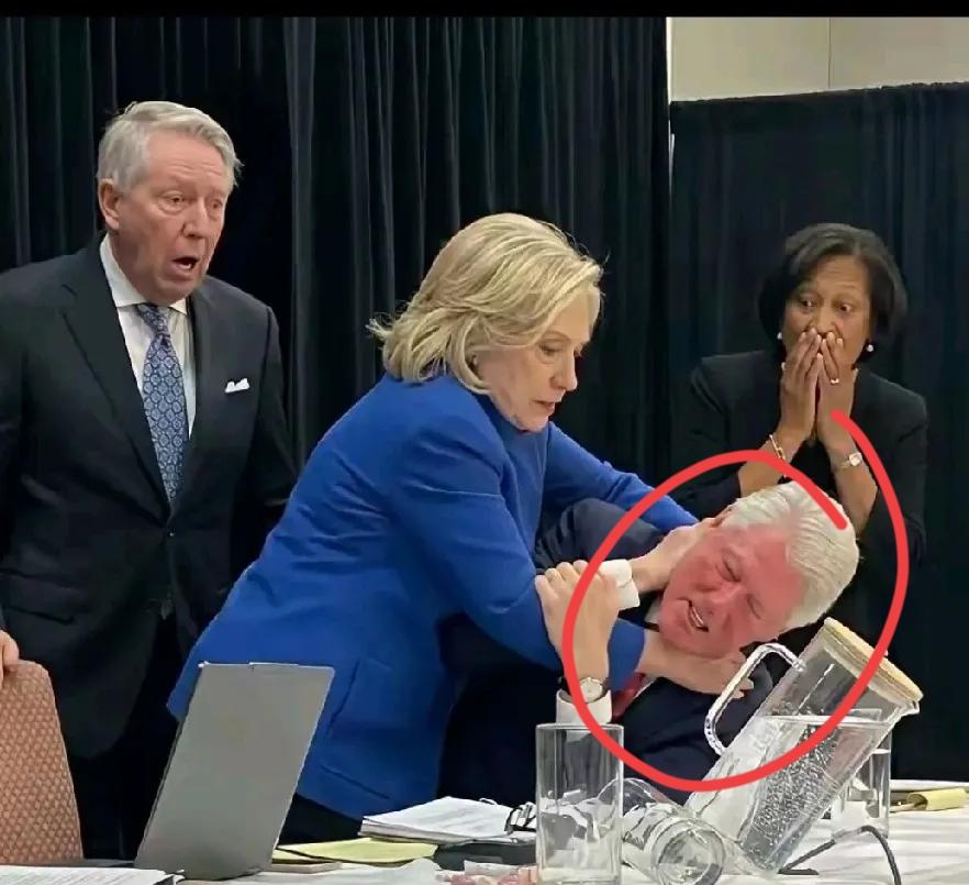 这是一张AI照片,不过真的忒有意思! 这是希拉里和克林顿,在听证会的现场,两人当时的服装和造型,就是这一个。 希拉里当时确实愤怒了! 而克林顿,确实有点心虚! 毕竟证据链,绝对是有克林顿的“不堪”,否则希拉里会愤怒离开,至于“掐”脖子的戏码,现场是绝对没有的。 至于私底下有没有,那就不得而知了!