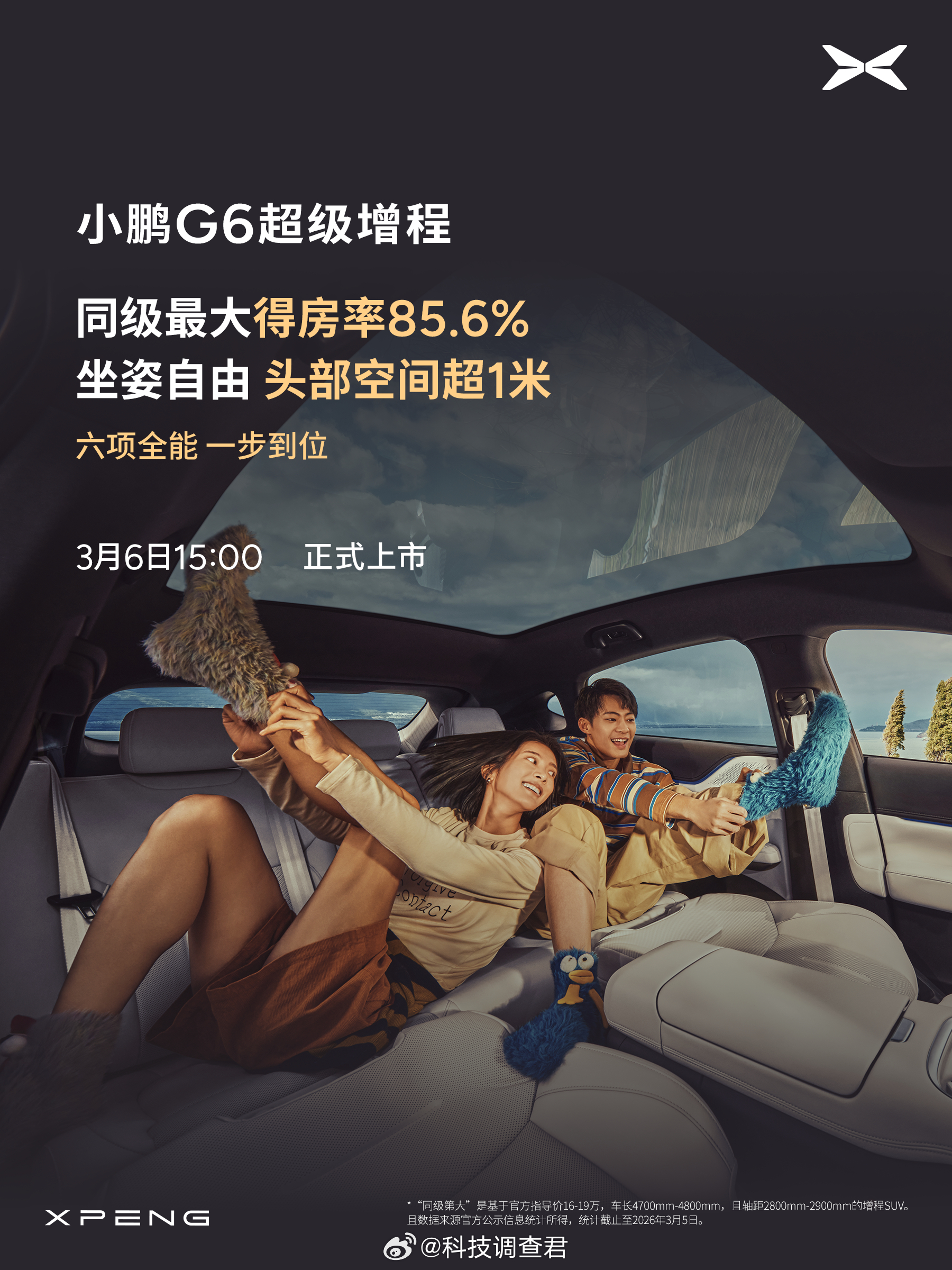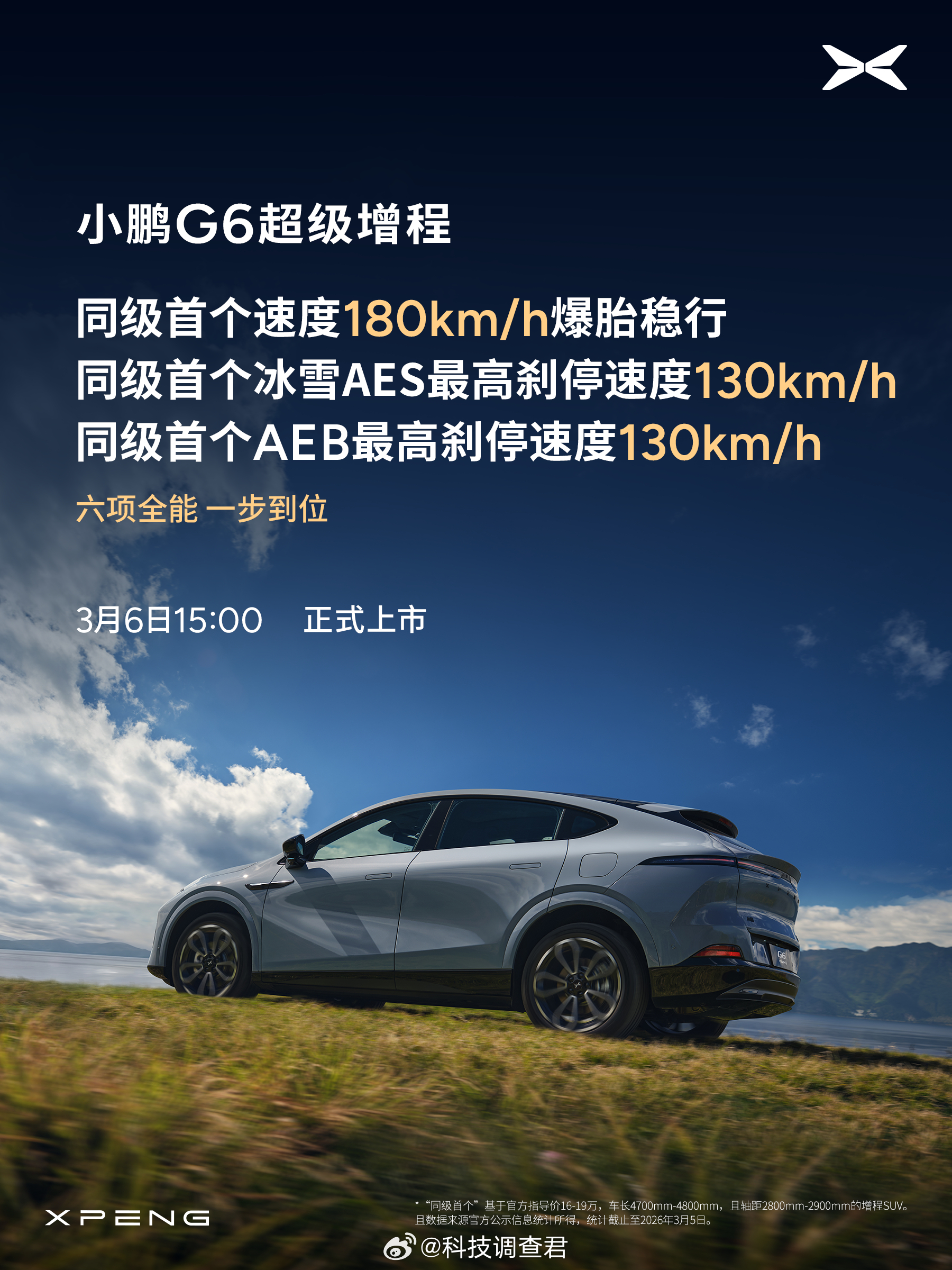 小鹏G6超级增程上市定档3月6日说多了又夹了,大家自己看图吧?小鹏G6超级增程来了,依旧是全球续航最长1704km,第二代VLA,前几天的发布会妈妈们都说了比人还好用好开~小鹏G6超级增程六项全能一步到位