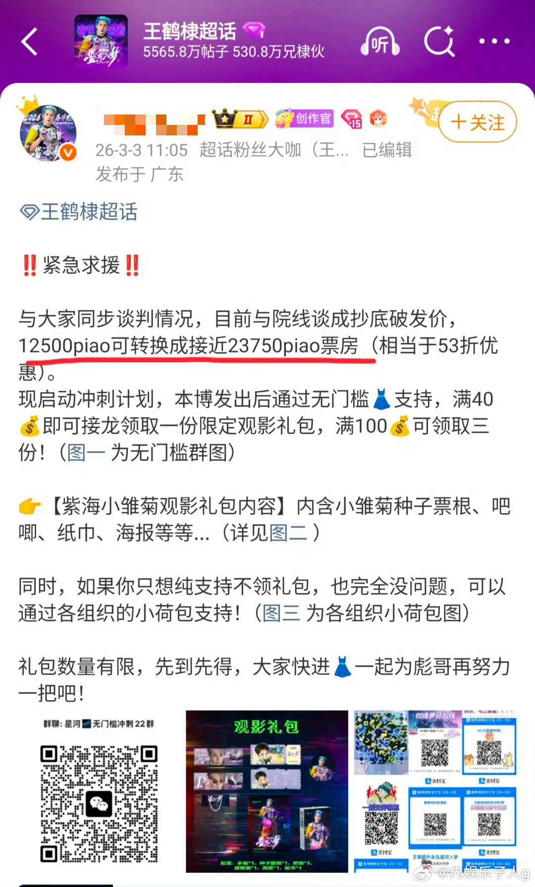 王鹤棣粉丝还挺有门路…12500票换23750票房…