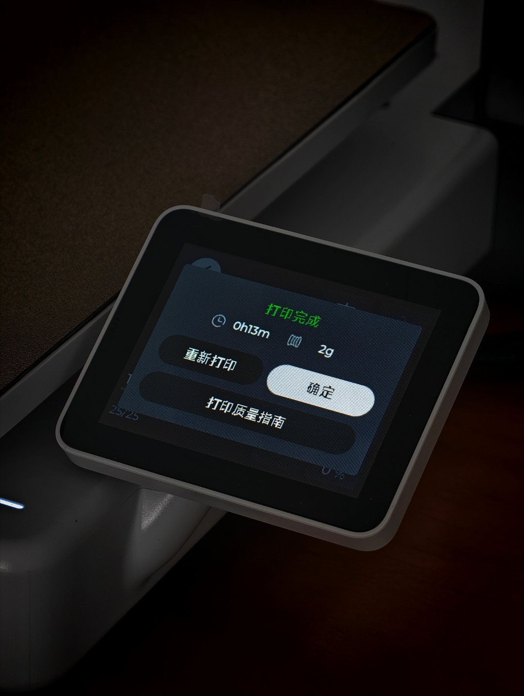 试了一下打了个小玩意,感觉还挺可以的。没有想象中那么毛毛躁躁,挺顺滑。速度也还行。后面打一些稍微大一点点的看看。光想着买机器,忘了买耗材了。到了发现配的只有20g的耗材,根本没办法愉快的打。