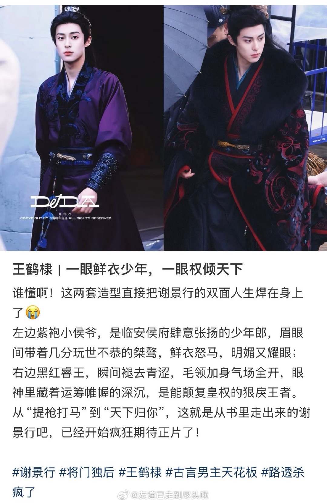 王鹤棣将门独后 的两套造型,小侯爷和睿王,书粉满意否?王鹤棣紫衣少年谢景行