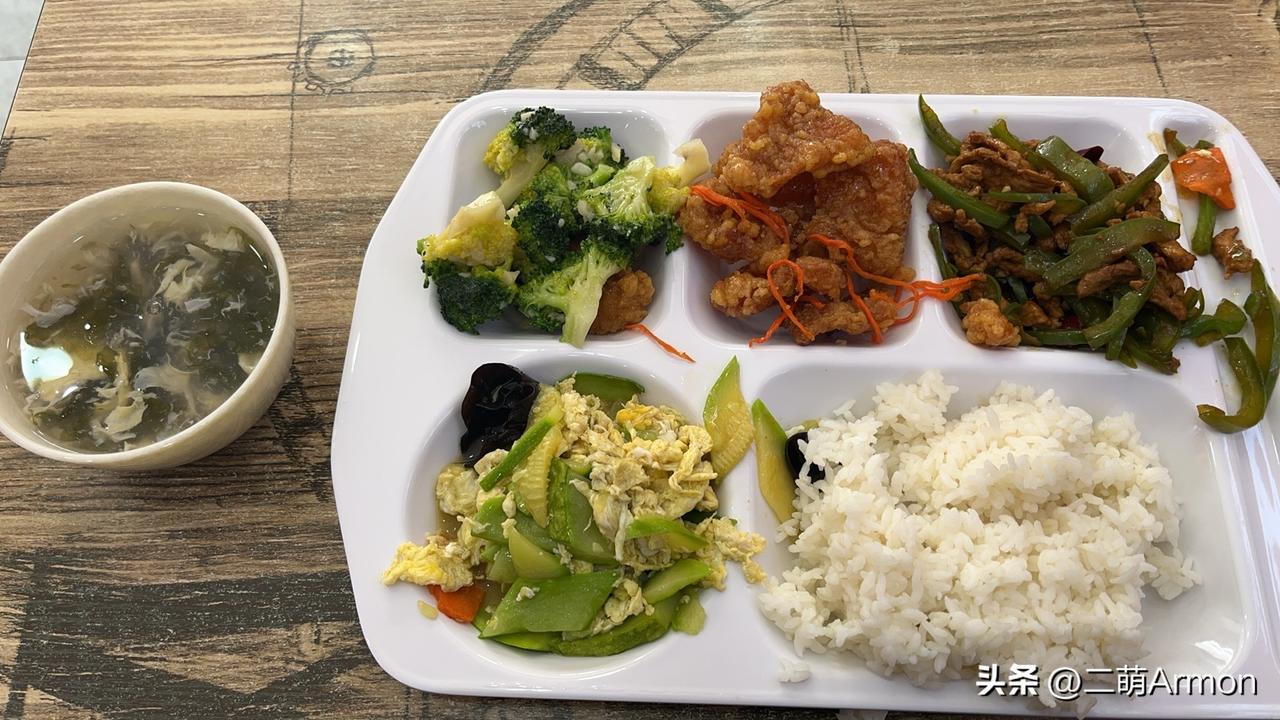 今天中午,依旧吃东北盒饭,好吃! 不到十六块的价格,两荤两素,米饭和鸡蛋汤随便炫,性价比真的很高。不知不觉间,我已经来这里吃了三四次了,但还是很愿意来。 今天要了一个锅包肉、一个青椒肉丝、一个切瓜鸡蛋、一个西兰花,味道都很不错,尤其是锅包肉,又酥又脆,真的很好吃。 炫完饭感觉心满意足,来到许久不曾光顾的图书馆,准备将今天的文章写一写,然后再回单位睡一会。 今天的工作内容不多,得好好珍惜学习和读书的时间啊。