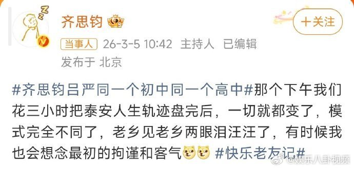齐思钧回应和吕严同一个初高中剧本都不敢这么写!三小时人生复盘,直接解锁幼儿园 + 初高中同款校友,这俩是真・宿命感拉满快乐老友记快乐老友有风季