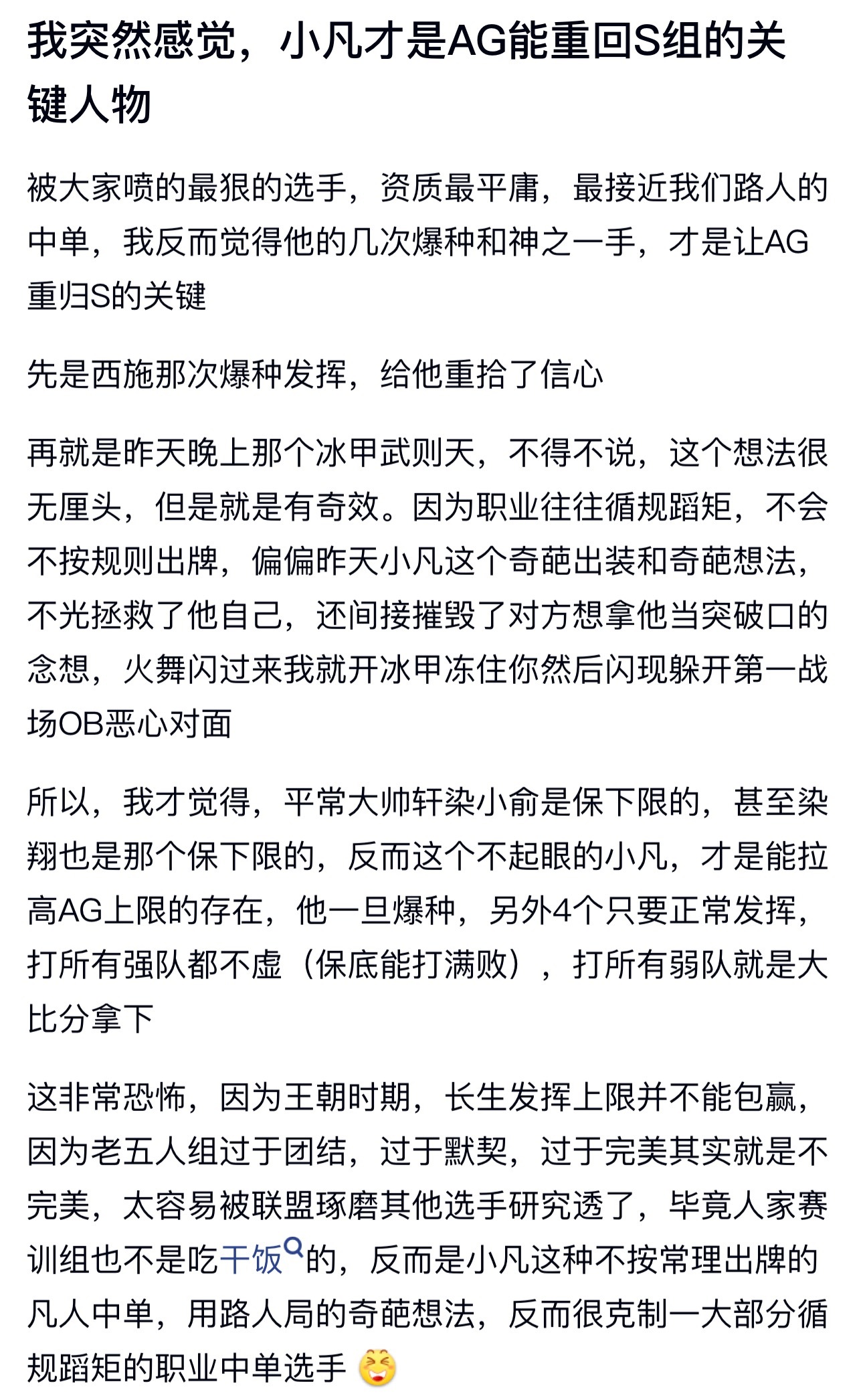 kpl小凡才是AG能重回S组的关键人物