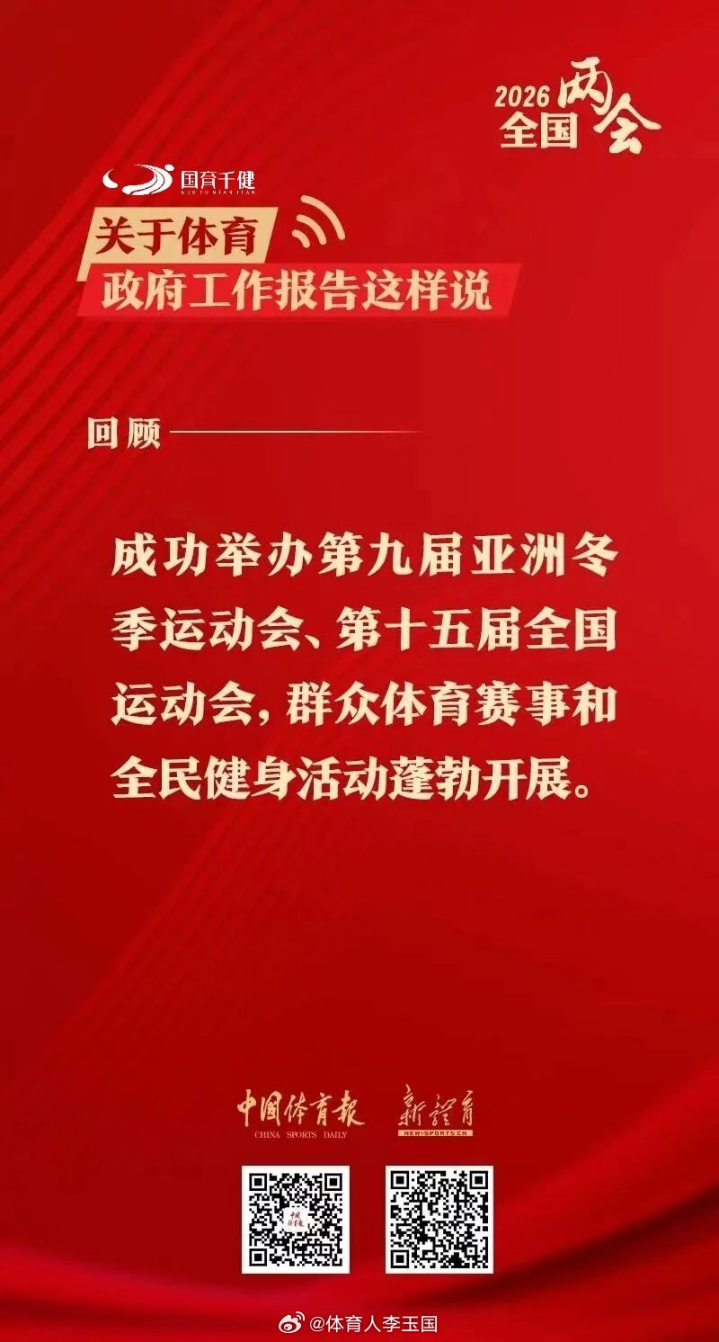 今年政府工作报告中的“体育重点”来了!极简版政府工作报告全国两会2026全国两会划重点 北京