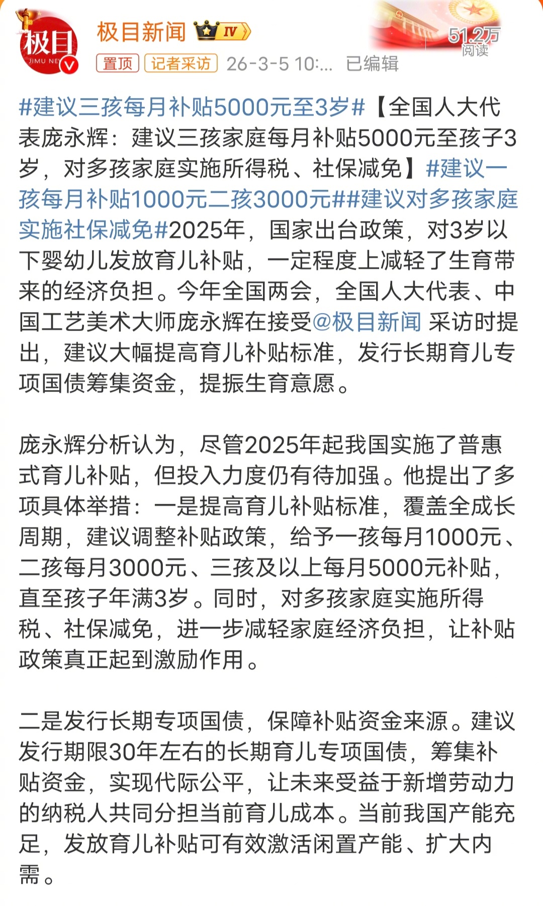 建议一孩每月补贴1000元二孩3000元如果这个建议通过的话,我家孩子已经超过3岁了,这笔补贴还可以给我补上吗???