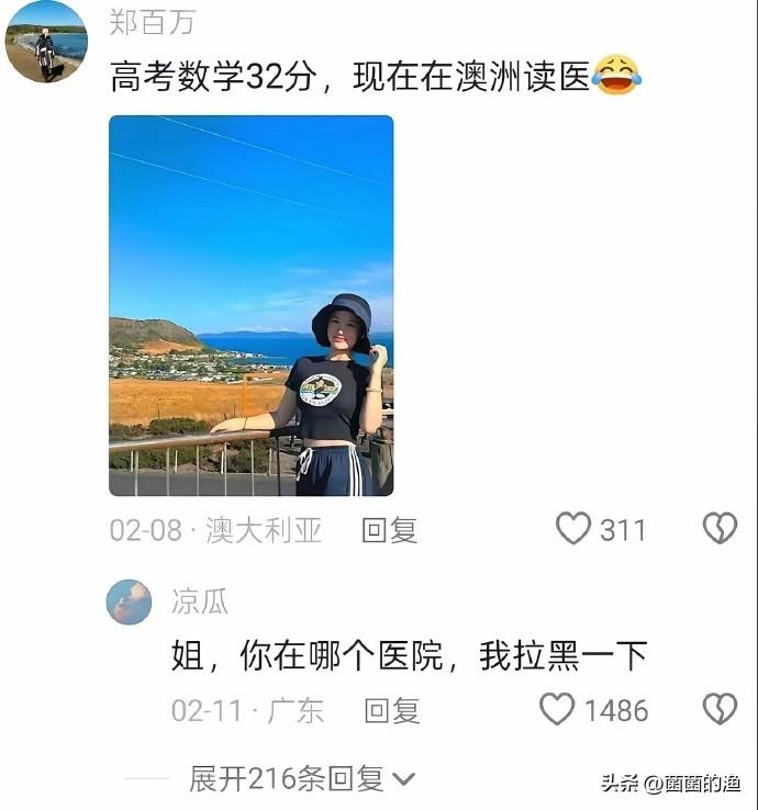 高考数学32分不可怕,毕竟条条大路通罗马,有人生在罗马;去澳洲留学读医也不可怕,毕竟海外经历能开阔眼界。可怕的是,一个数学考32分、靠留学镀金的人,回国后居然能堂而皇之地走进医院,穿上白大褂,手握患者的生杀大权。这才是真正让人脊背发凉的事。 我们总对“留学生”三个字抱有莫名的滤镜。仿佛只要沾了“海归”,就自带精英光环,能力自动升级,学历自动等同于实力。可现实呢?有人花钱买文凭,有人混日子拿学位,甚至有人连基础学科都一塌糊涂,却能靠着“洋学历”的包装,在国内职场横行无阻。就像那个数学32分的学生,或许她连最基本的逻辑推导都搞不清楚,却可能被某些机构捧为“海外医学专家”,甚至堂而皇之地参与医疗决策。 这不仅是对医学的亵渎,更是对患者的不负责任。医学是严谨的科学,容不得半点水分。一个连数学都学不明白的人,如何能精准计算药剂剂量?如何能严谨分析病理数据?如何能在生死关头保持清醒的判断?当“留学生”的标签成了能力的遮羞布,当“海外经历”成了逃避实力检验的挡箭牌,我们该反思的,不是留学本身,而是我们对“光环”的盲目崇拜。 更可怕的是,这种现象并非个例。多少人把留学当成逃避国内竞争的避风港,多少机构把“海归”当成收割流量的噱头,多少用人单位把“洋学历”当成筛选人才的唯一标准?当学历成了交易的商品,当能力成了可有可无的附加项,当“祛魅”成了戳破泡沫的必然,我们才意识到:真正的实力,从来不需要靠“留学生”的标签来证明。 所以,别再迷信“留学生”了。无论是高考32分的逆袭,还是海外镀金的神话,都该回归到“真才实学”这个本质上来。医院需要的是能治病救人的医生,不是只会念“洋经”的花架子;社会需要的是脚踏实地的人才,不是靠包装上位的“神医”。当“祛魅”成为共识,当实力成为唯一的通行证,或许,那个32分的“神医”,就再也无法混进医院的大门了。