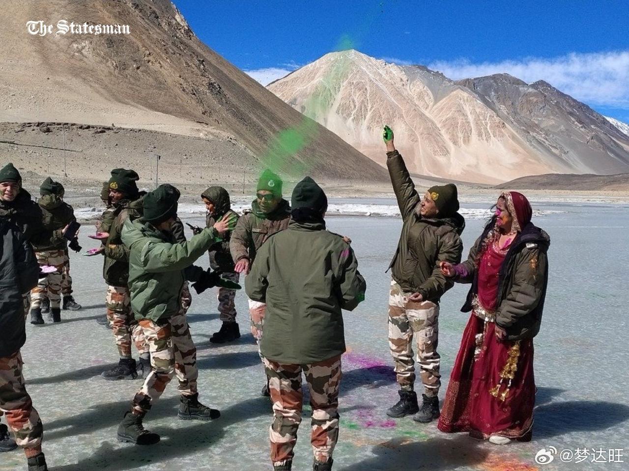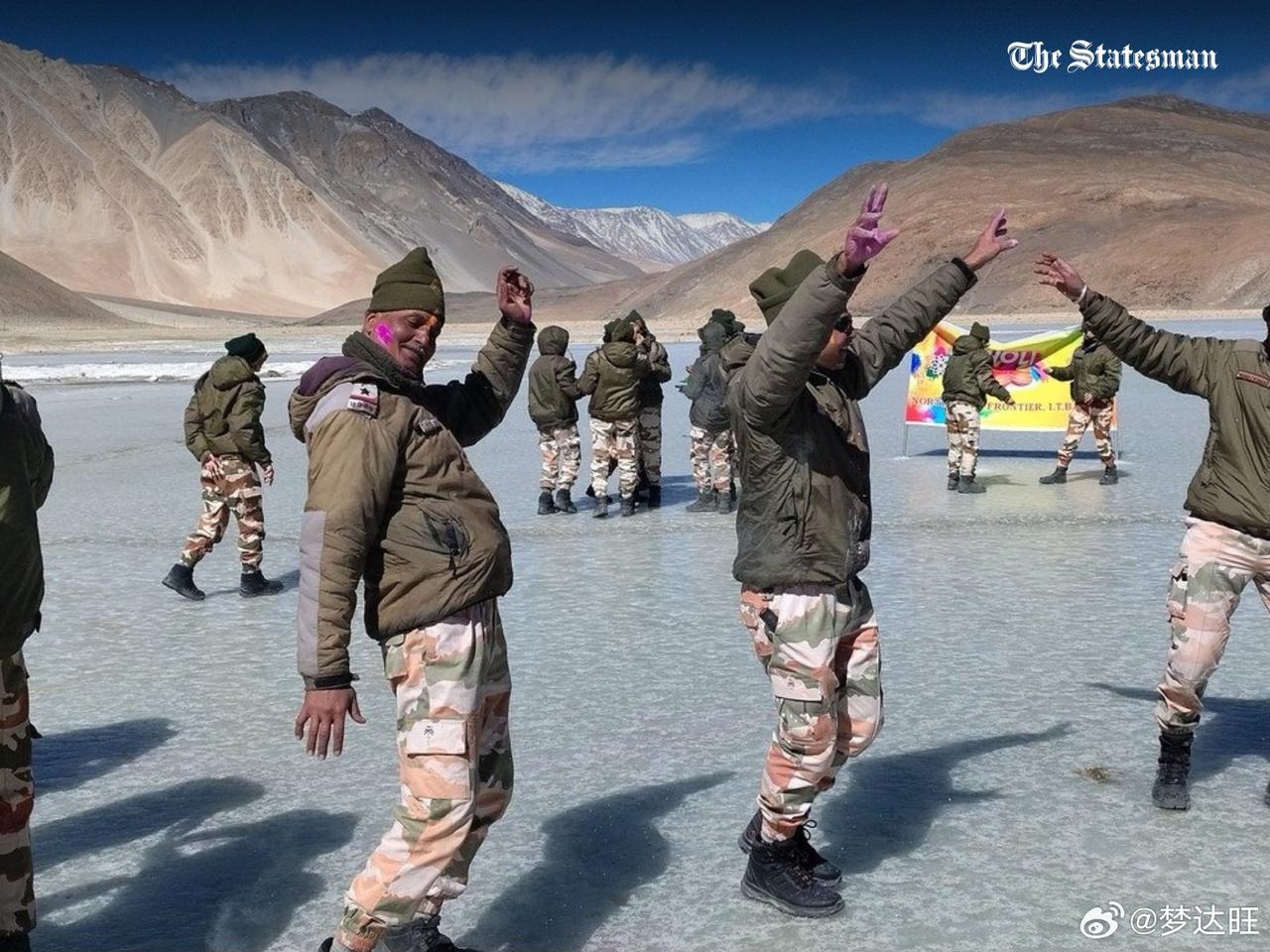 据印度媒体报道,3月3日中印实控线西段的印度边境警察部队(ITBP)西北边境分队在班公湖冰封湖面上举行洒红节庆祝仪式。此处的印度边境警察部队(ITBP)应该是西北边境总队拉达克支队的第24营,该营营部位于班公胡西端卢昆戈兵营,担负整个班公湖西岸的一线防务。