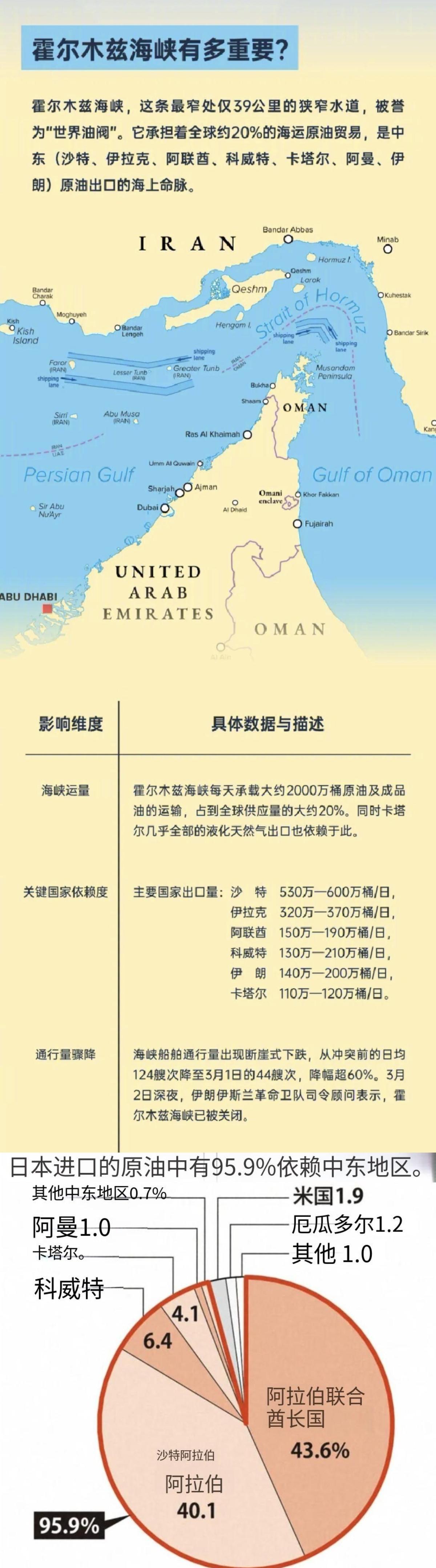 日本原油95%以上依赖中东,如果霍尔木兹海峡封锁3个月,日本GDP下降1.5%,如果封锁6个月,下降3%以上。汽油、电力、物流全面上涨,家庭支出会大幅上涨。日本多数炼油厂是针对中东重质含硫原油设计,难以大规模加工美国轻质低硫原油,况且海运遥远成本高昂。尽管日本有几个月的石油储备可缓冲短期冲击,但只要霍尔木兹海峡关闭3-6个月,日本经济会造成毁灭性打击。