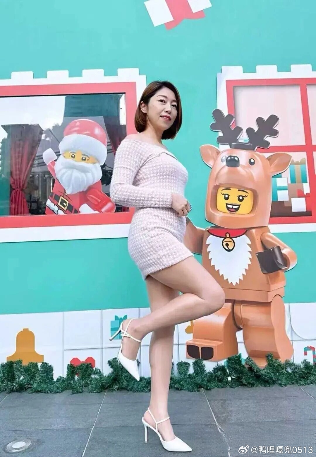 写真 浅粉色格子连衣裙真好看