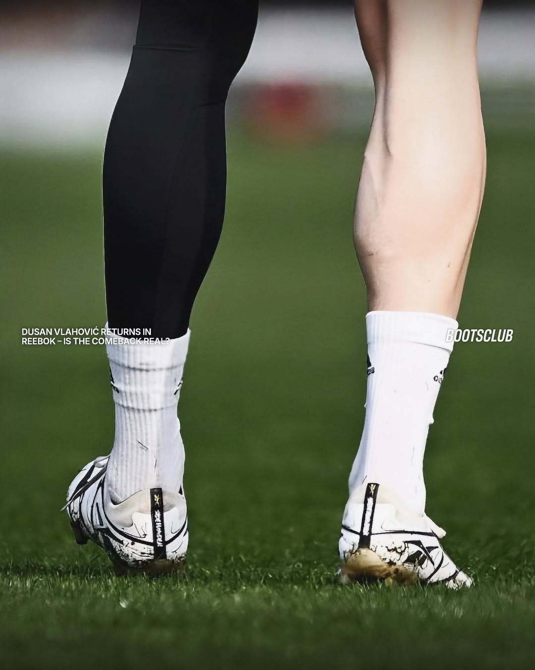 弗拉霍维奇在训练中上脚了一双锐步足球鞋。足球鞋锐步
