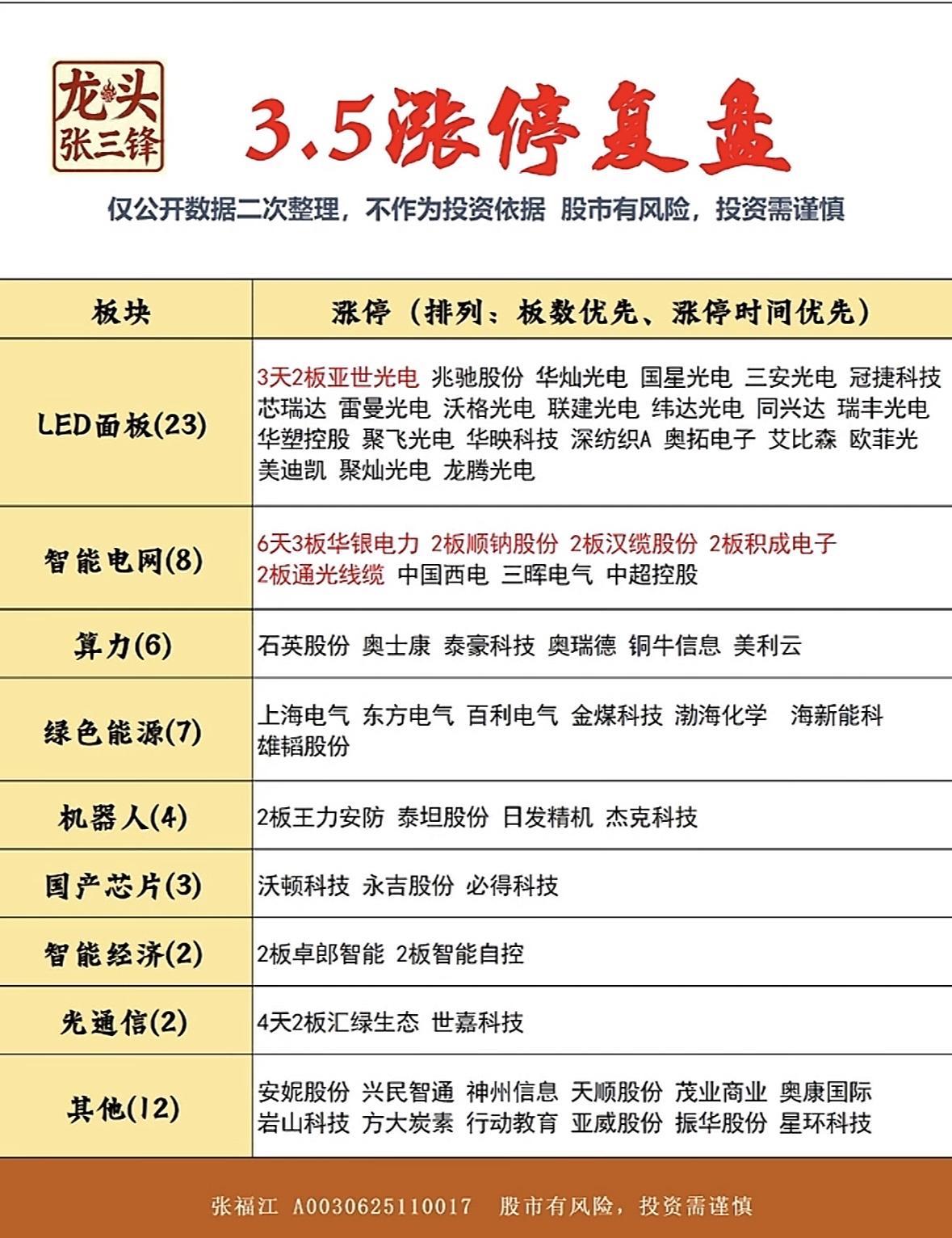 3月5日的涨停板情况值得好好说道。当日全市场有不少股票表现亮眼,不含ST股、退市股,有69股涨停,连板股总数7只,30股封板未遂,封板率为70%。电力、电网板块很强势,汉缆股份10天6板,华银电力6天3板,通光线缆20CM2连板。 还有另一份分析显示,当日63股涨停,连板股总数达13只,24股封板未遂,封板率72%。机器人板块持续领涨,卓翼科技11天7板,圣龙股份等连板晋级。午后拓维信息涨停带动算力板块反弹,大位科技9天6板、宏景科技20CM4天2板。想抓住投资机会,这市场动态可得好好掌握。