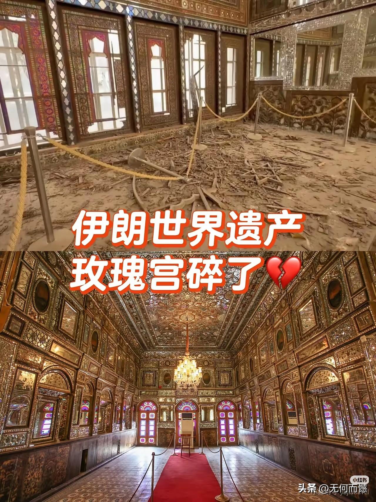 伊朗的玫瑰宫,是一座富丽堂皇的古建筑,建筑艺术水平非常高,里面珍藏着大量的有价值的文物,是著名的世界文化遗产,可惜这么漂亮的一座宫殿,现在被炸了个稀里哗啦,断壁残垣,非常的狼藉,看了让人心痛不已,人类的很多文化瑰宝,多数都是毁于战火,没想到文明已经发展到今天这种程度,这样的情况还会出现,可气,可叹!