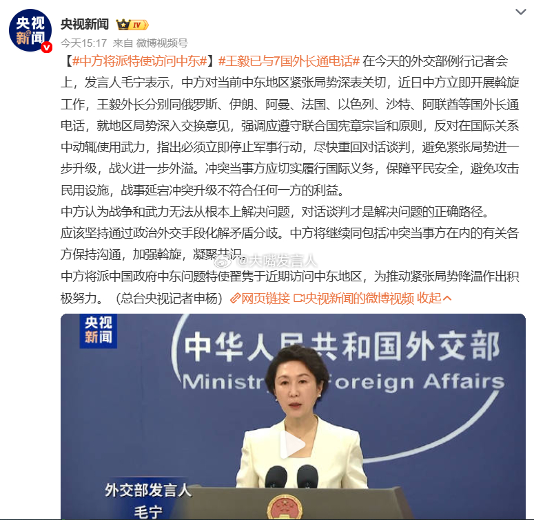 中方将派特使访问中东,热点观点