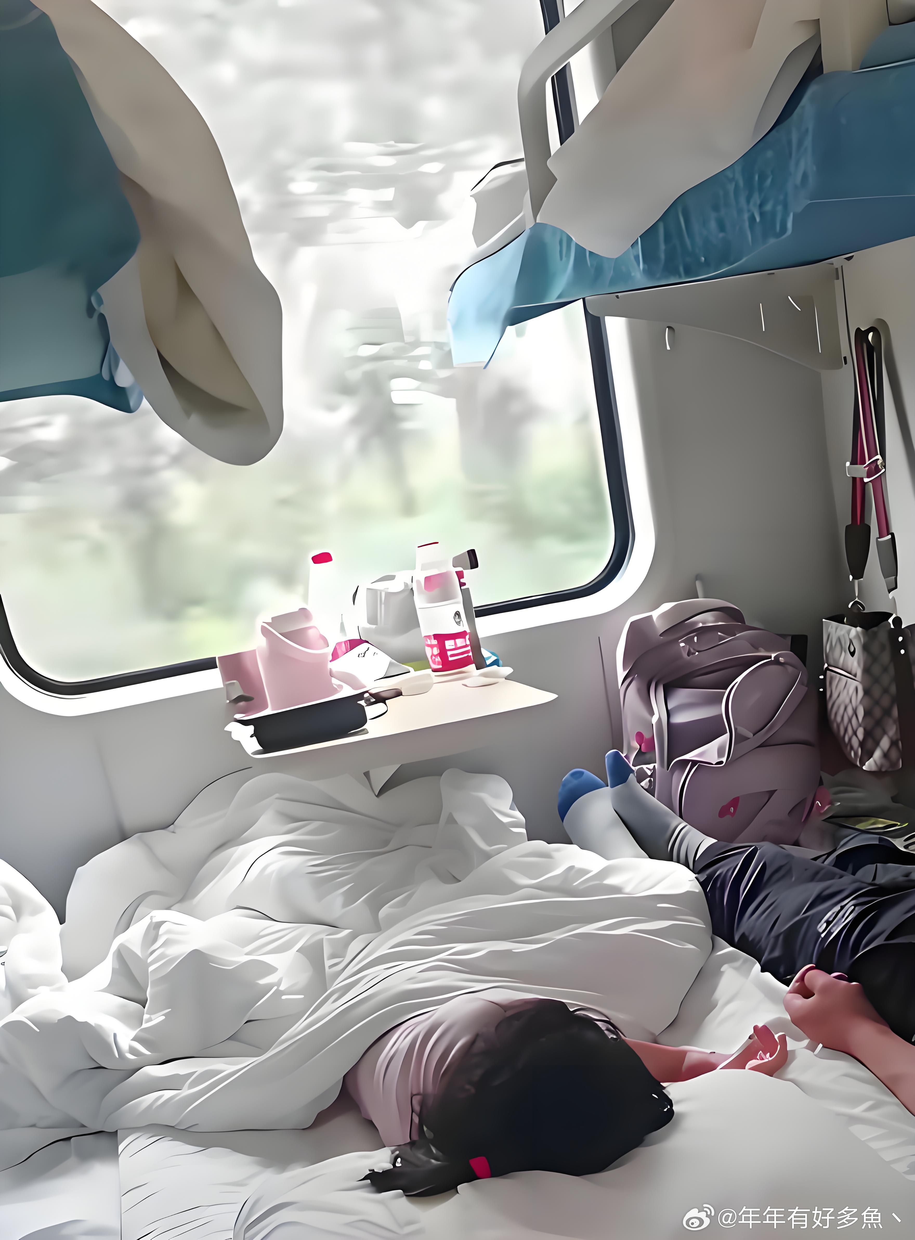 在火车上睡成这样合适吗?让别人怎么下床…
