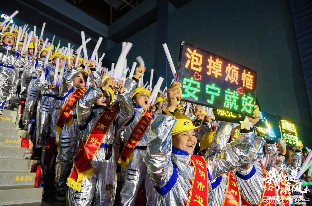 【“我就是滇风”盛典晚会,安宁方阵硬核登场】 聚光灯下,是谁的身影在闪耀?欢呼声中,是谁步履铿锵?晚会现场,星耀体育馆的舞台上,安宁方阵震撼登场!银色的流光划破夜空,硬核的口号响彻春城。 很多人问: “安宁的底气从哪里来?”答案,就藏在安宁方阵里。 他们不是专业的演员,他们是父亲、是母亲、是儿女,是车间里的工匠、是马路上的卫士、是讲台上的园丁、是病房里的天使……晚会中,他们卸下了日常的疲惫,披上了城市的荣光。 他们,就是安宁的温度、态度与实力!