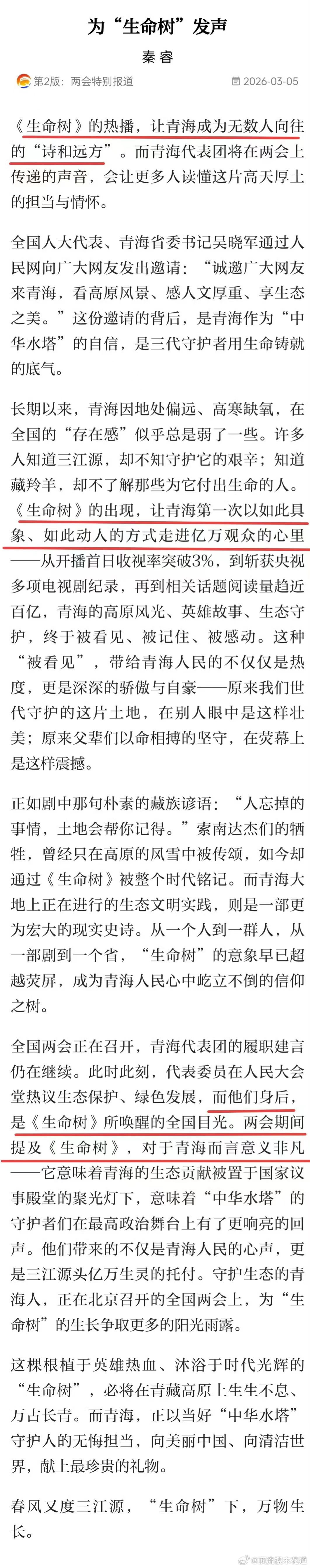 两会关于生命树的报导。