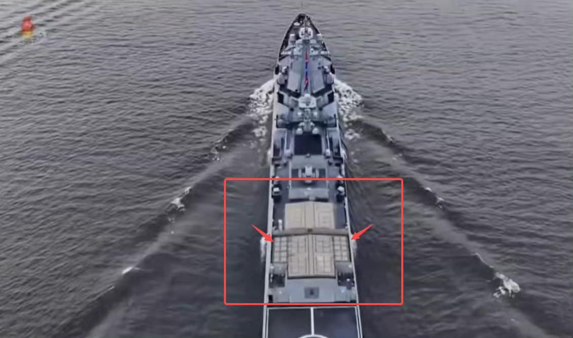 朝鲜崔贤号驱逐舰后部的垂发近景,看起来是不同尺寸和细节的三种或四种垂发规格。