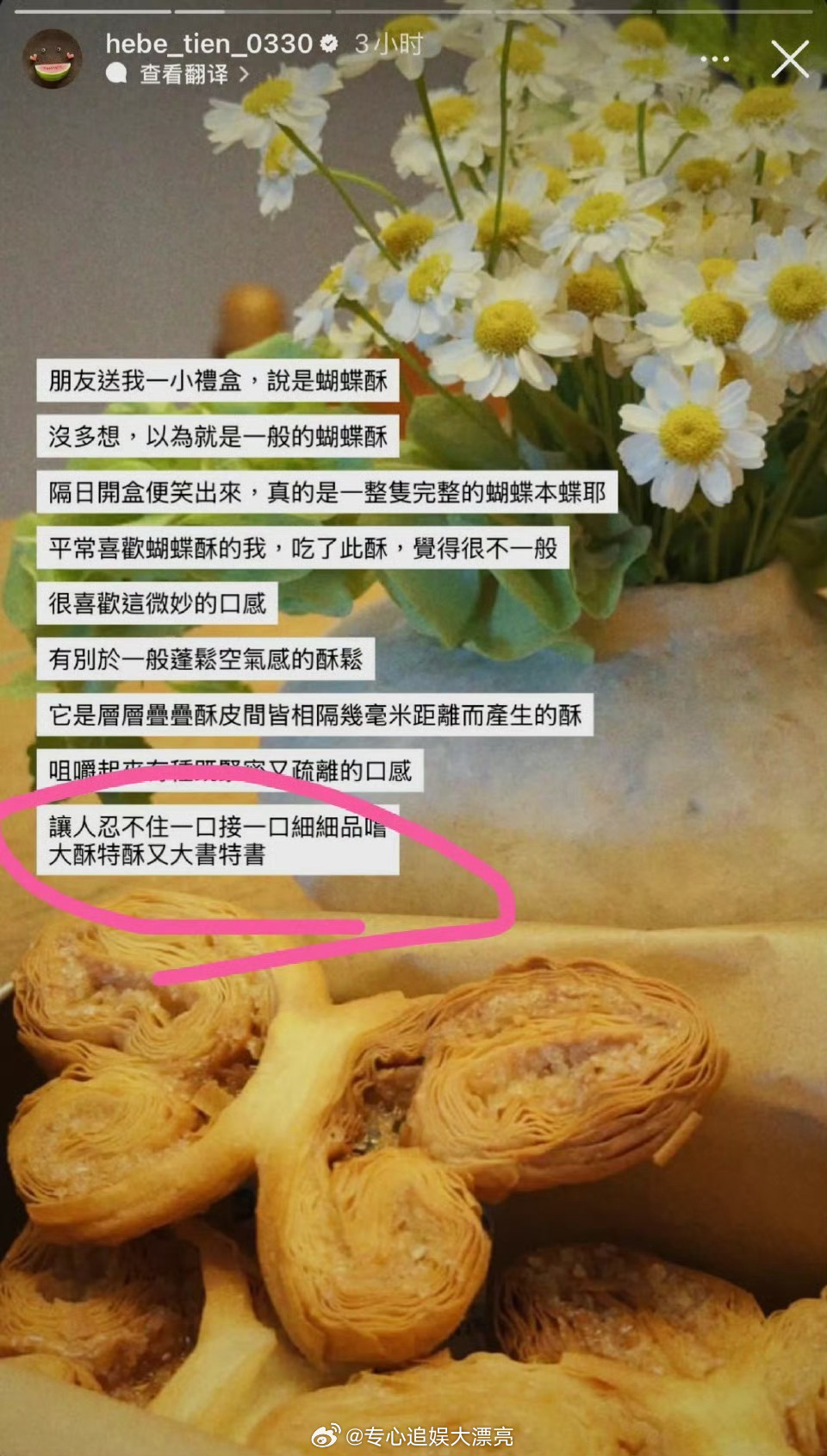 田馥甄大酥特酥 周杰伦大吃特吃田馥甄发文描述蝴蝶酥口感时强调“大酥特酥”,并配图附带“一颗两颗三颗…”文字和小猪表情符号;周杰伦随后用“大吃特吃”回应新专辑进度。