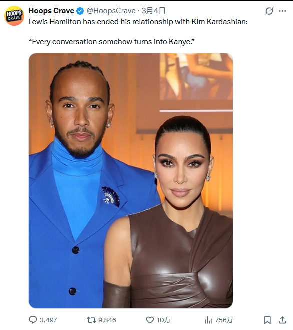曝金卡戴珊汉密尔顿已分手曝金卡戴珊分手 哈?曝金卡戴珊汉密尔顿分手,原因是每次聊天到最后都会聊到侃爷。啊?