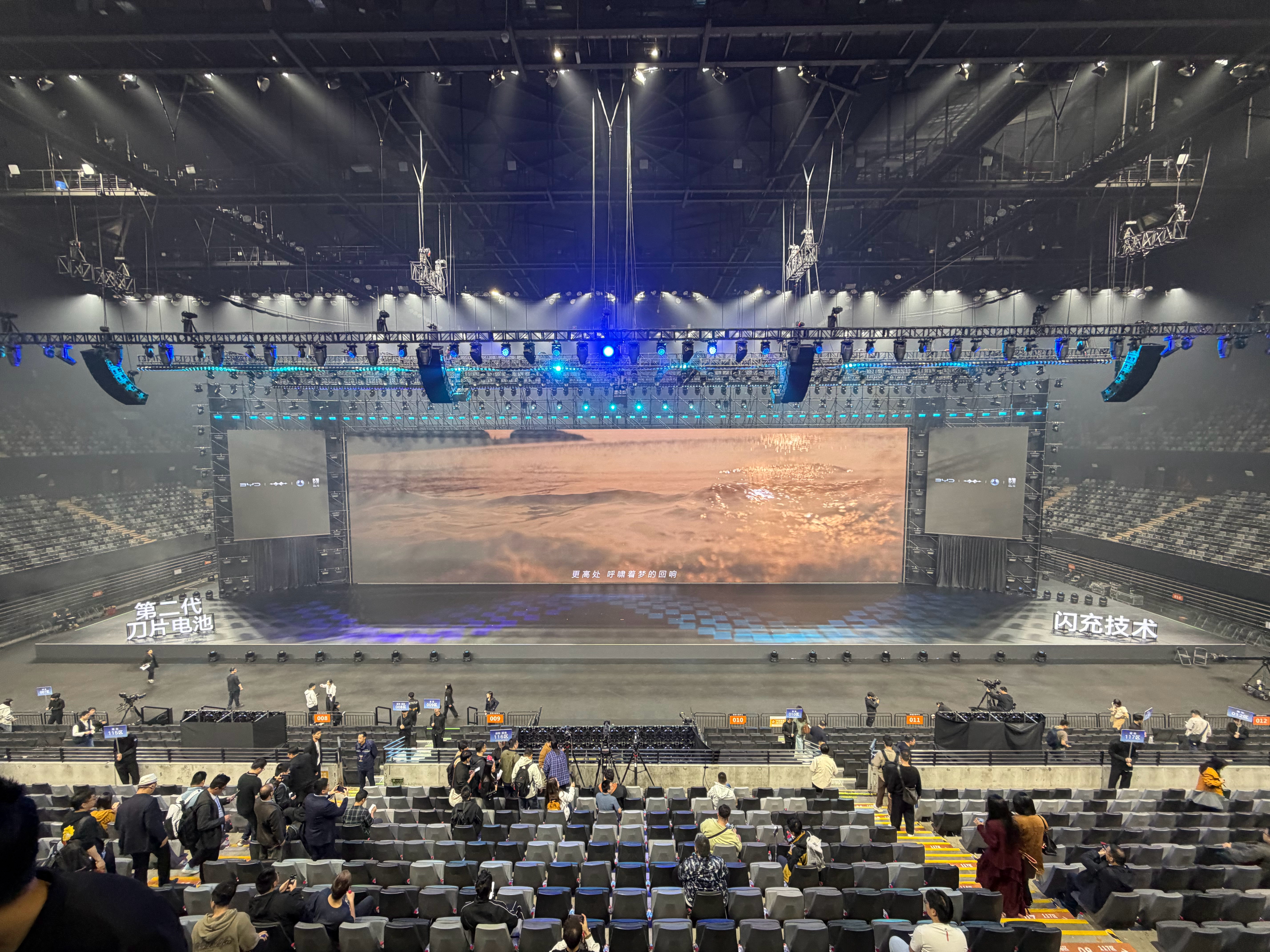 比亚迪今天发布会这个地方就是深圳开演唱会的地方,我这个位置看台最靠前,演唱会就是 980 的区域,听说今晚王力宏也会来,怒省 980 深圳·深圳大运中心体育馆
