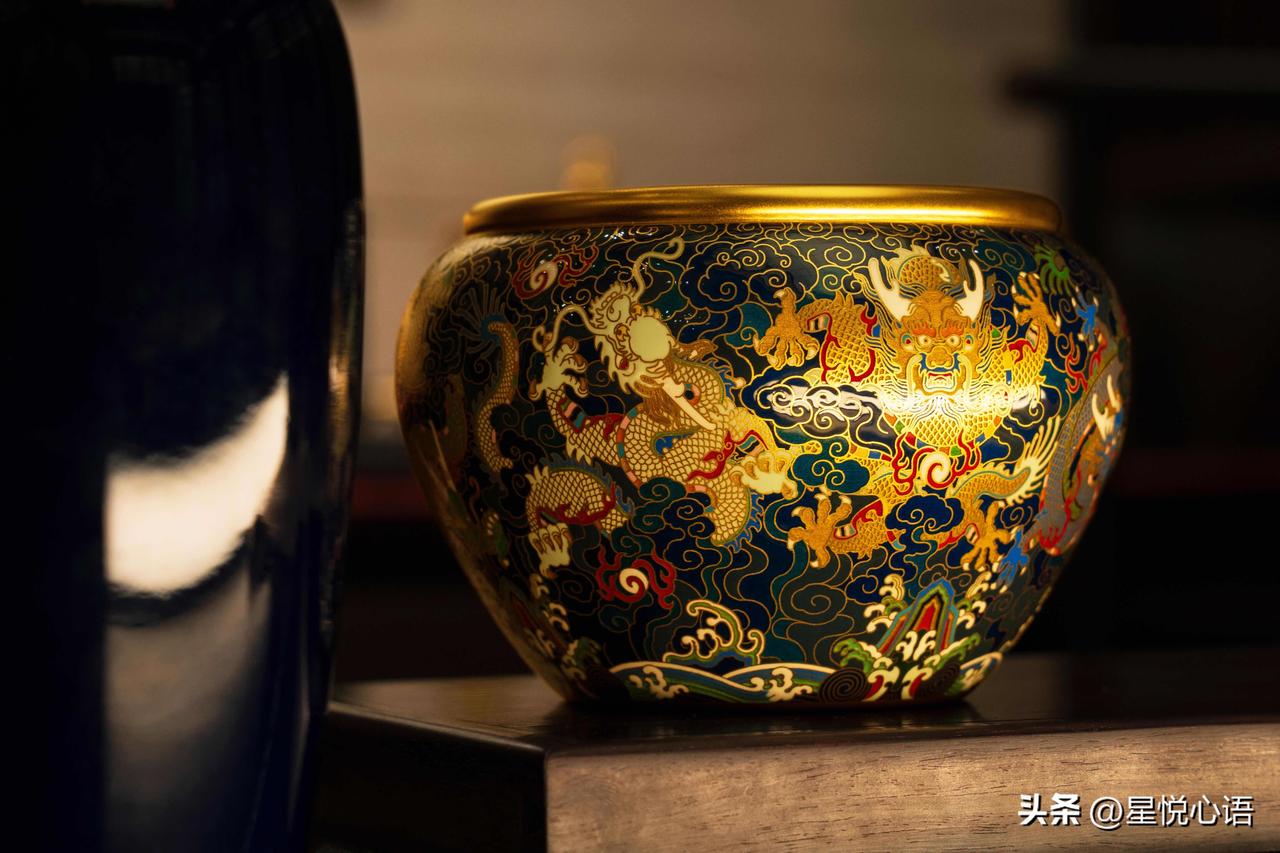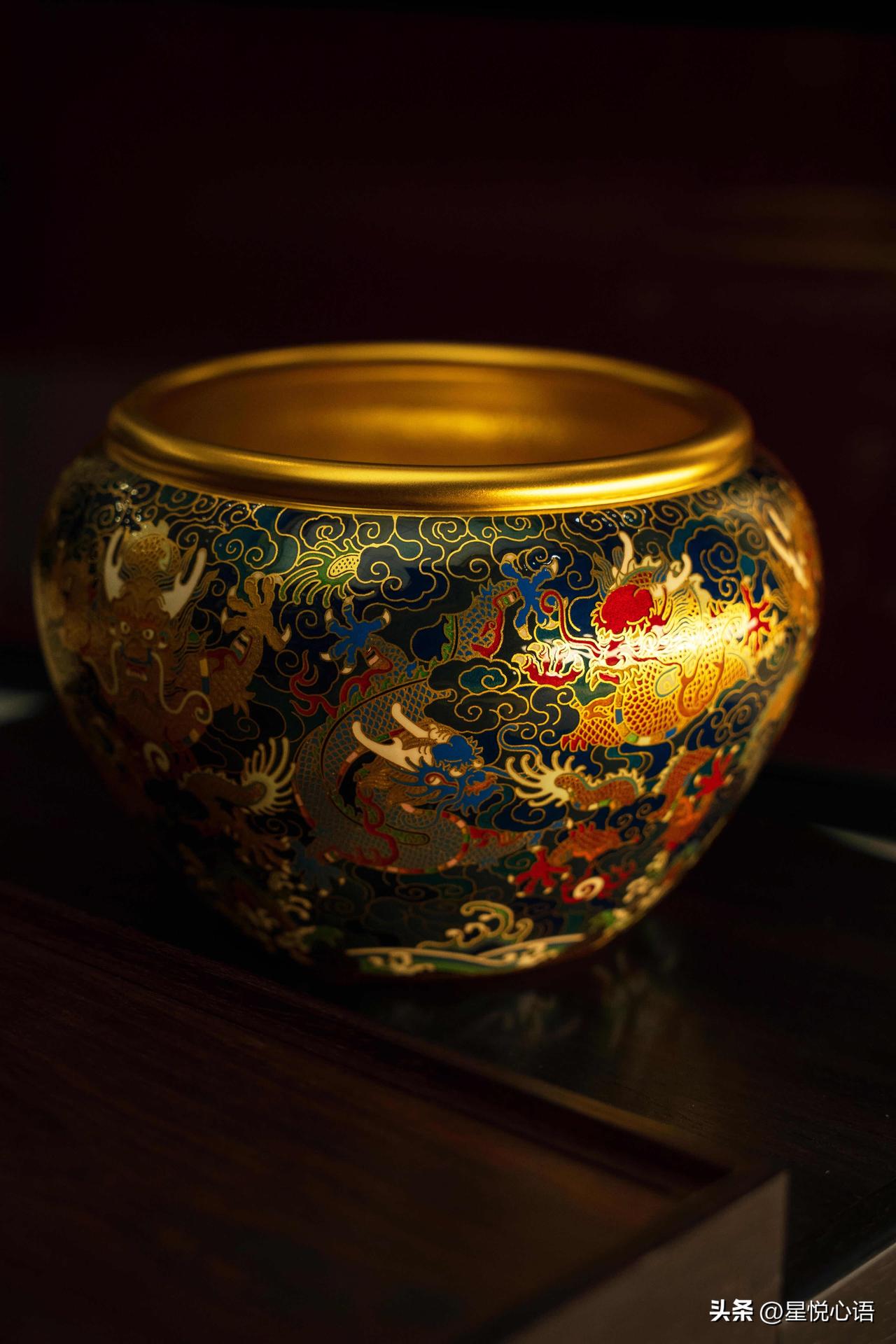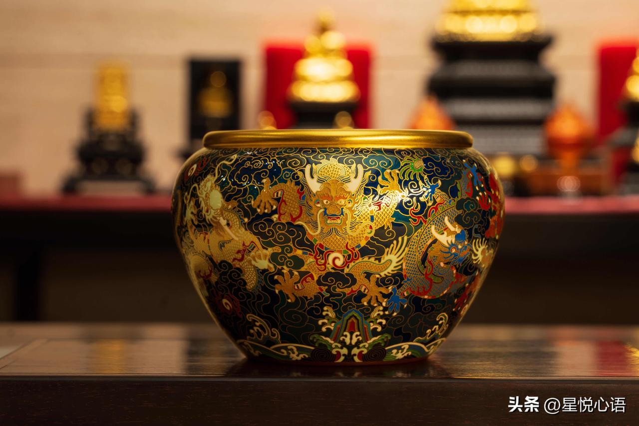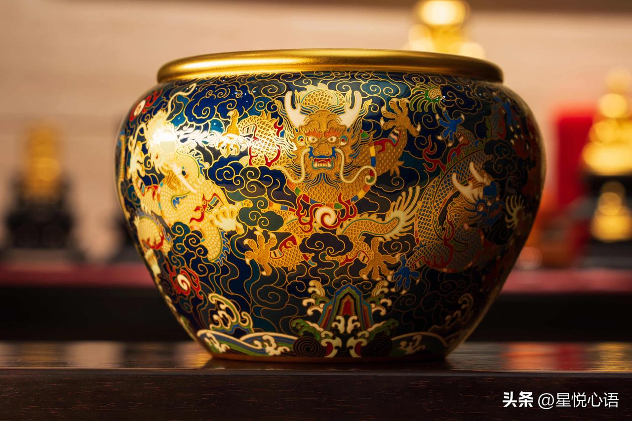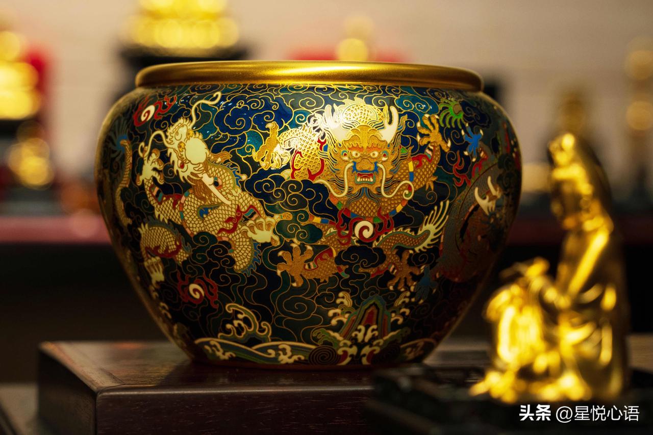 老铺黄金的东方美,真的刻进骨子里了! 提梁壶套装太绝了, 唐代锤揲“一张打”工艺太有料。 金锭经万次手工锻打,成一整张金片再塑壶。 壶身锤痕自然,像水波如龙鳞,手感超有韵味。 每一下锻打,都是匠人万分的用心,太见功力。 九龙缸更是精彩,足金为胎,珐琅为彩。 雕錾得格外精细,看着磅礴大气,贵气满满。 风调雨顺、聚财纳福的寓意,太合国人的心意。 老铺的美从不是表面功夫, 形有工艺之精,意有东方之韵。 把中式美学揉进金器里,让黄金不只是贵金属, 更是藏着文化与心意的传世臻品,这才是中式黄金的浪漫啊!