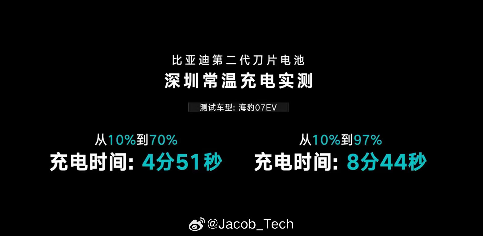 比亚迪第二代刀片电池比亚迪第二代刀片电池真的太顶了5分钟充好电、9分钟充满电这个充电速度,大大节省了在外的等待时间不担心说充电要等半天咯