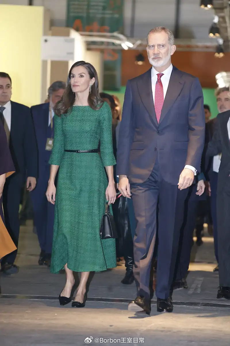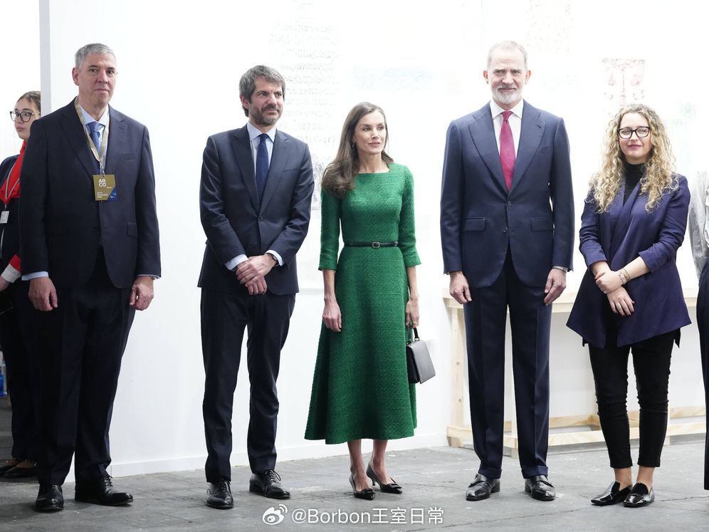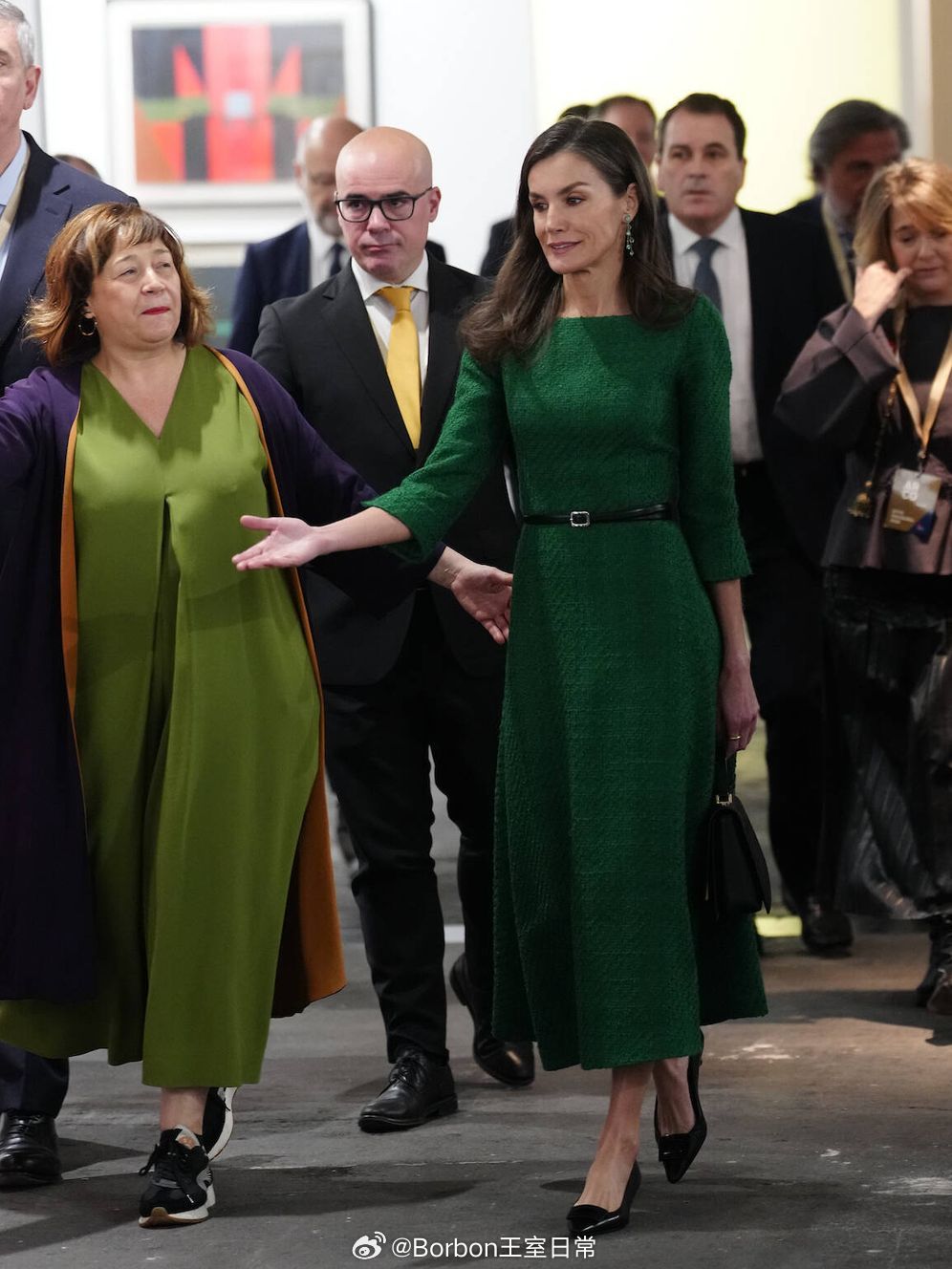 西班牙王室 3月5日,费莱出席第45届马德里国际当代艺术博览会开幕式,莱后Repeat了去年12-O的绿色系穿搭(网页链接)。突然穿这么正式,不会是不准备回zarzuela了,直接穿这样去接待纪尧姆和斯蒂芬妮吧