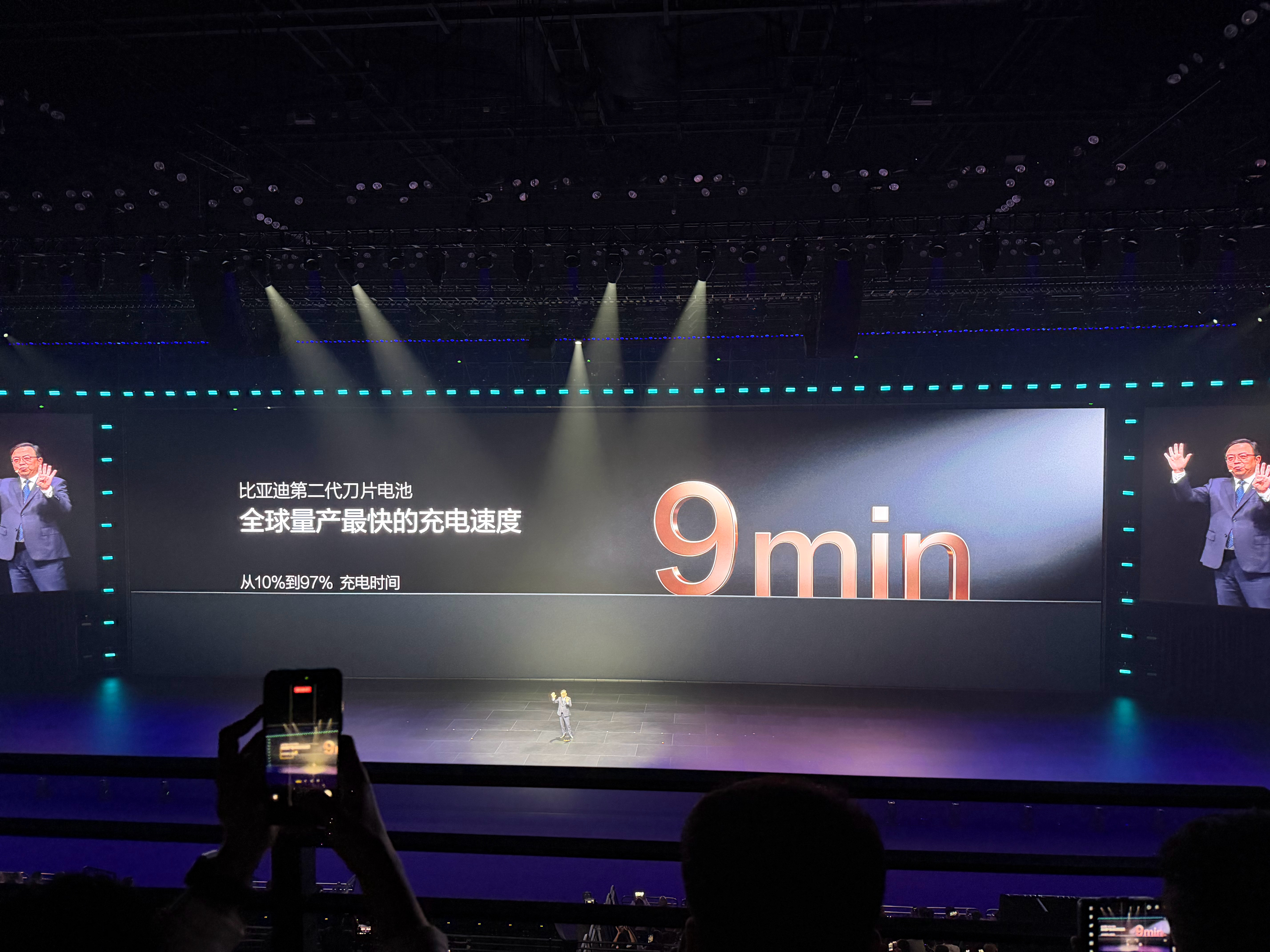 比亚迪正式发布了第二代刀片电池,10%-70% 大概五分钟,不过二代刀片电池重点突破的是 80% 之后的充电时间,官方公布 10%-97% 的充电时间是 9 分钟左右,我昨天也在现场体验了,确实是这个时间比亚迪 深圳·深圳大运中心体育馆