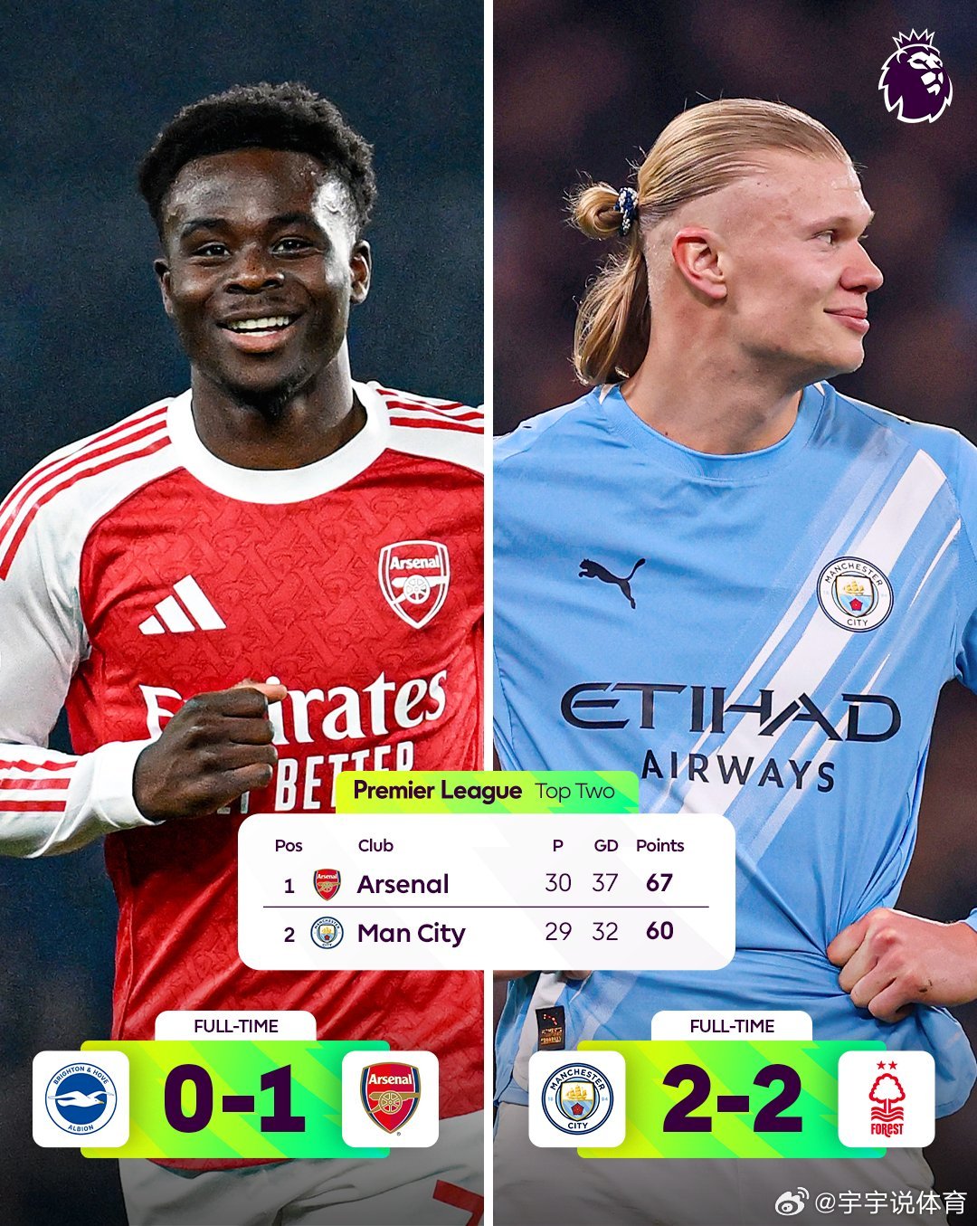 冠军争夺战的最新转折是曼城被诺丁汉森林控制,让阿森纳扩大了领先优势👀英超