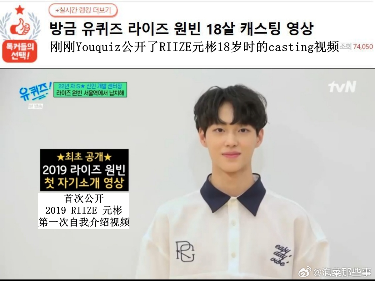 🔥韩网热帖评论翻译🔥You Quiz公开RIIZE朴元彬18岁时的casti
